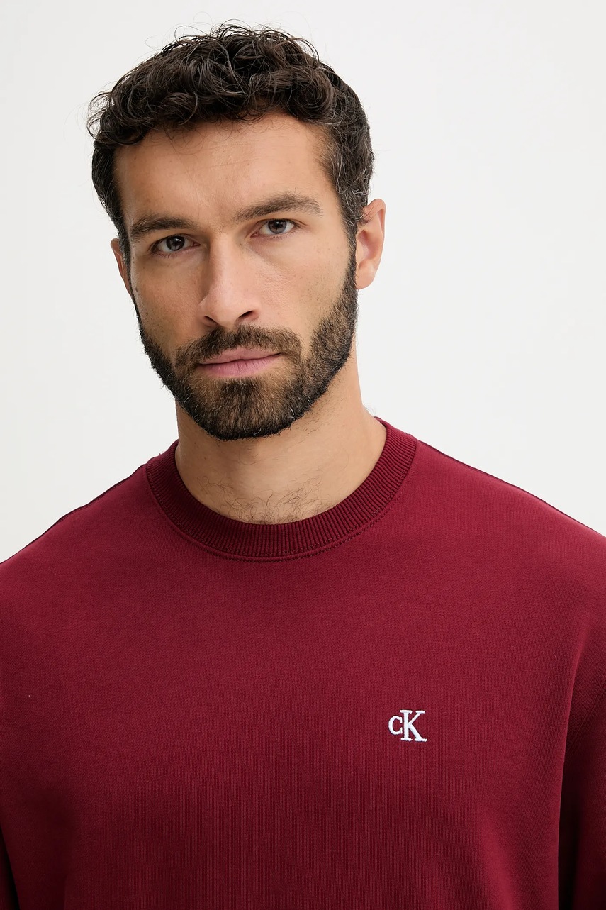 Calvin Klein Jeans bluza bawełniana męska kolor bordowy gładka LV04RC296G