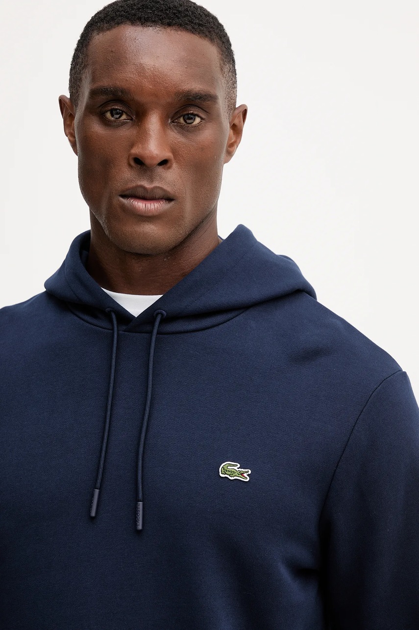 Lacoste bluza bawełniana męska kolor granatowy z kapturem gładka SH9839