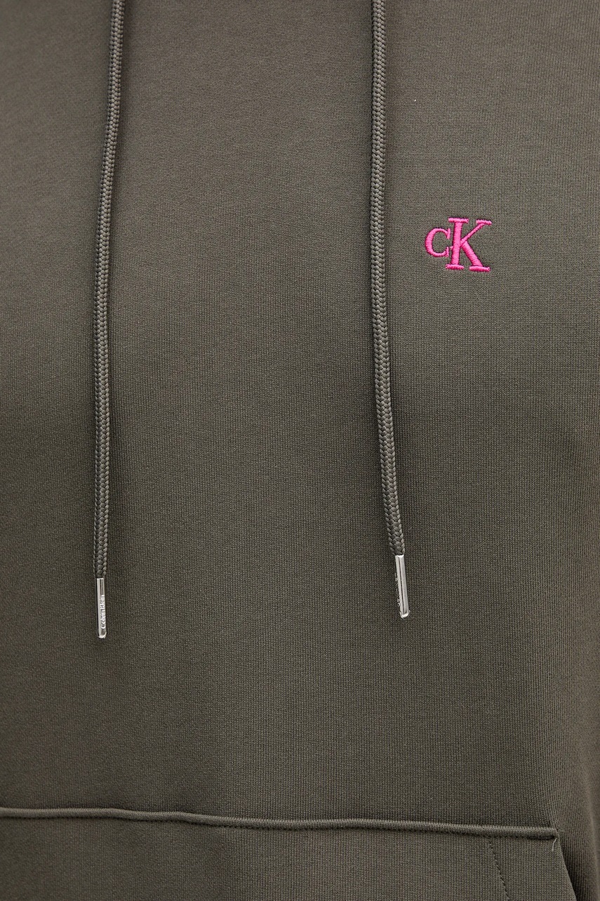 Calvin Klein Jeans bluza bawełniana męska kolor zielony z kapturem gładka LV04RC297G
