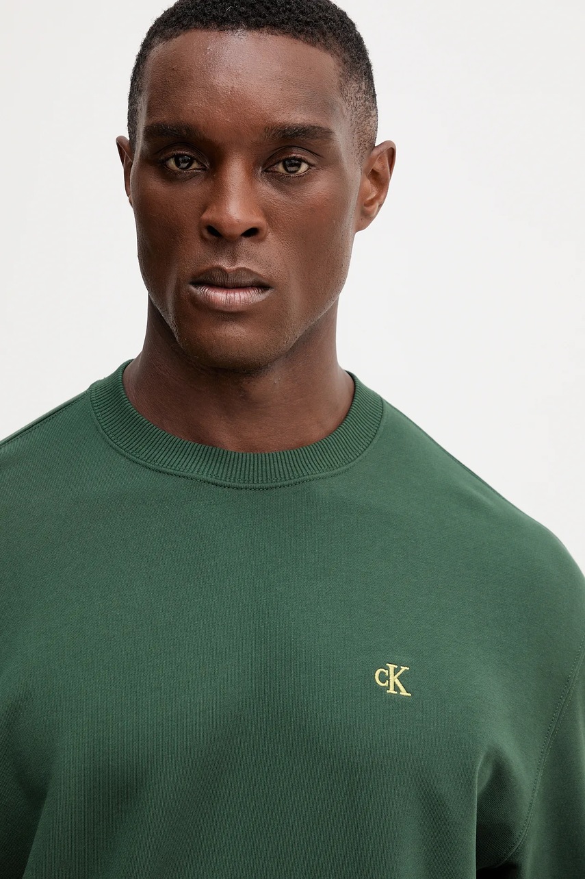Calvin Klein Jeans bluza bawełniana męska kolor zielony gładka LV04RC296G
