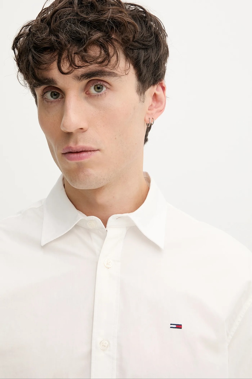 Tommy Jeans koszula bawełniana męska kolor beżowy regular z kołnierzykiem klasycznym DM0DM22026