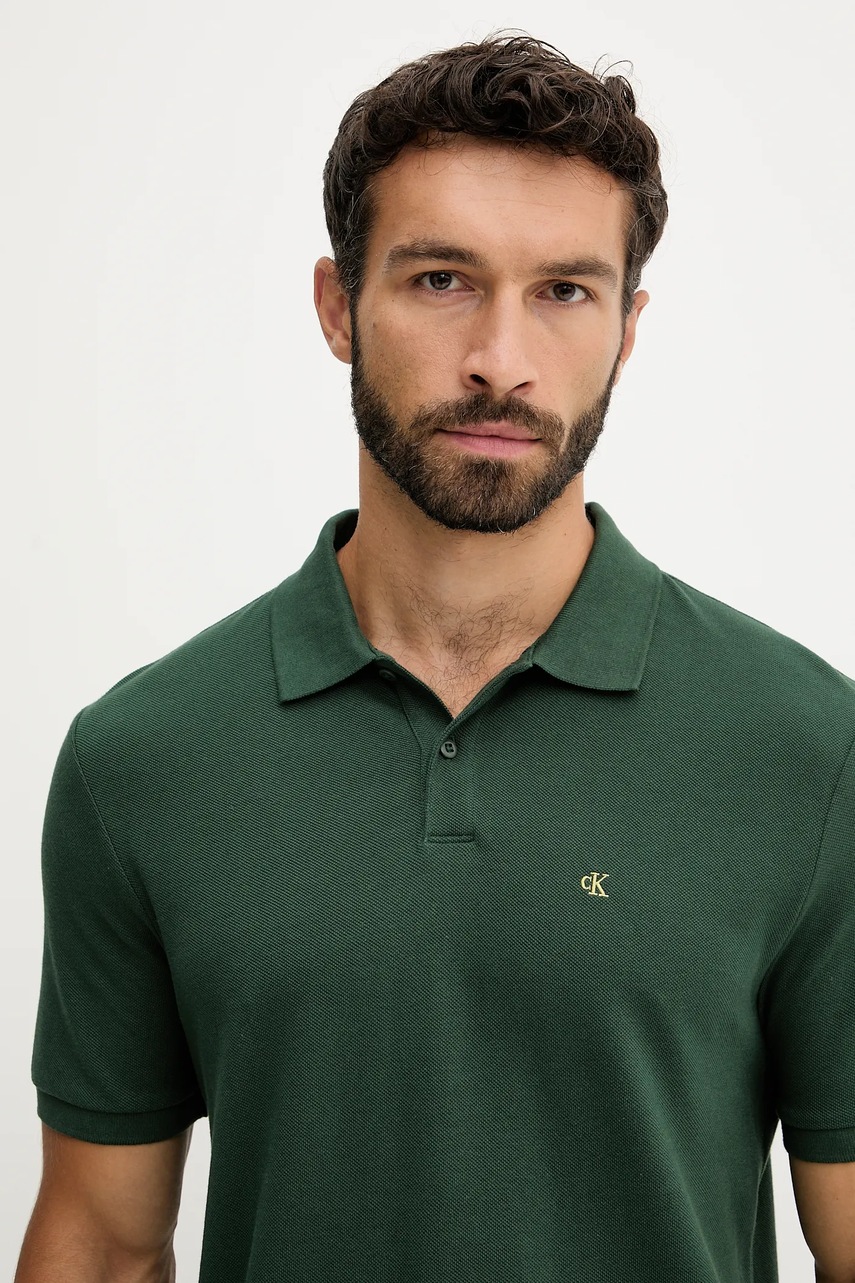 Calvin Klein Jeans polo bawełniane męski kolor zielony gładki LV040EM269