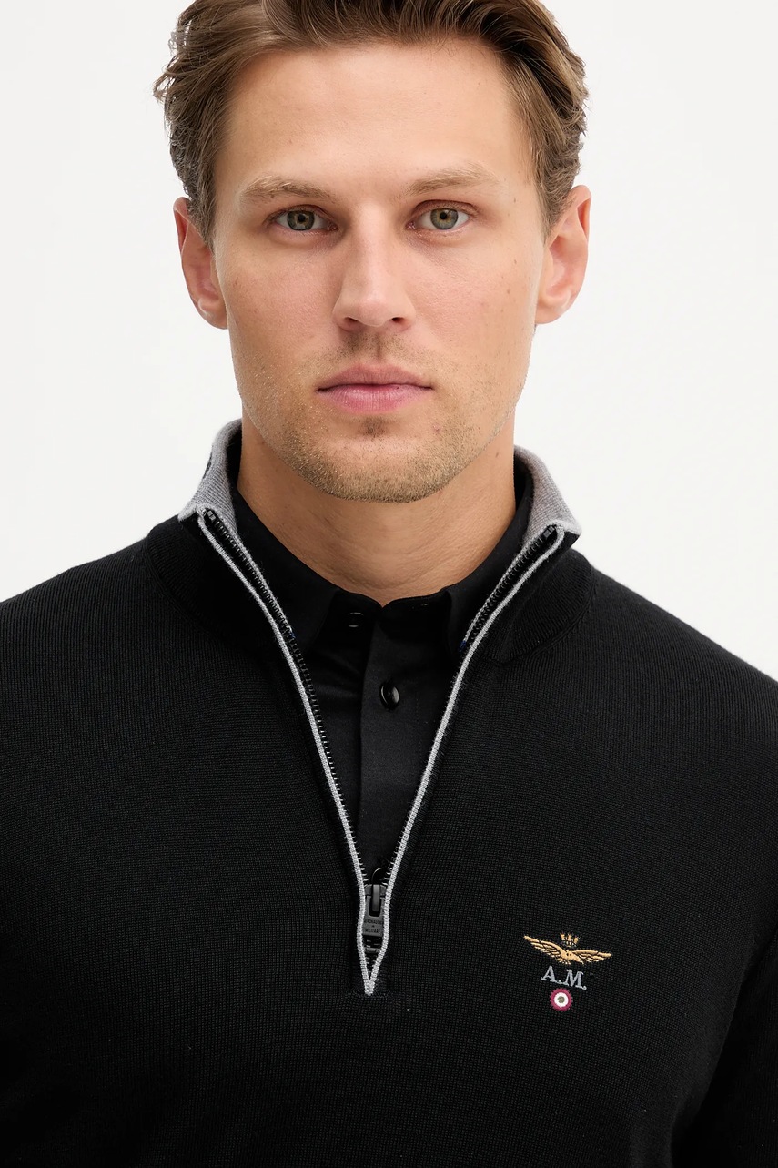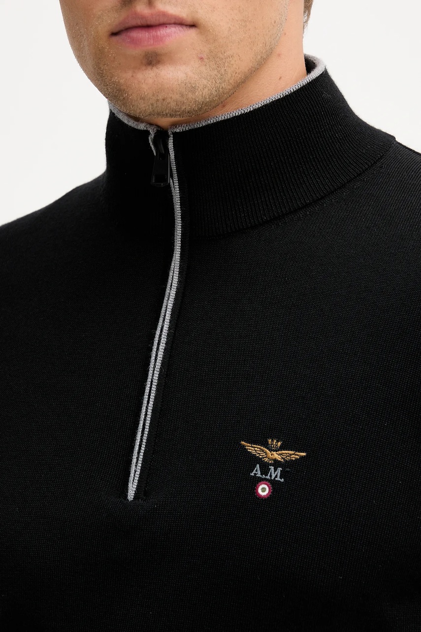 Aeronautica Militare sweter wełniany męski kolor czarny lekki z półgolfem MA1570UL00415