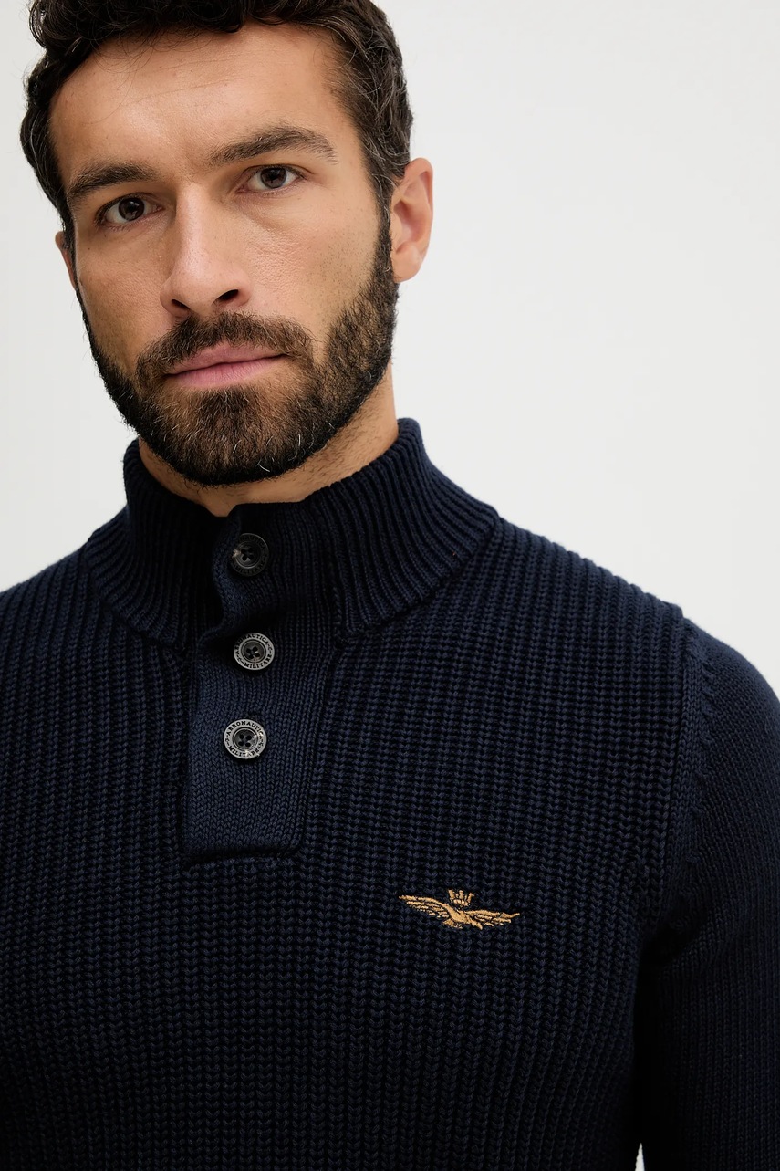 Aeronautica Militare sweter bawełniany męski kolor granatowy lekki z półgolfem MA1572UL00409