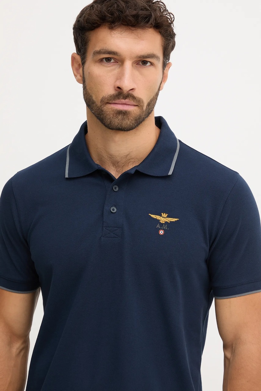 Aeronautica Militare polo bawełniane męski kolor granatowy gładki PO1308UP00082