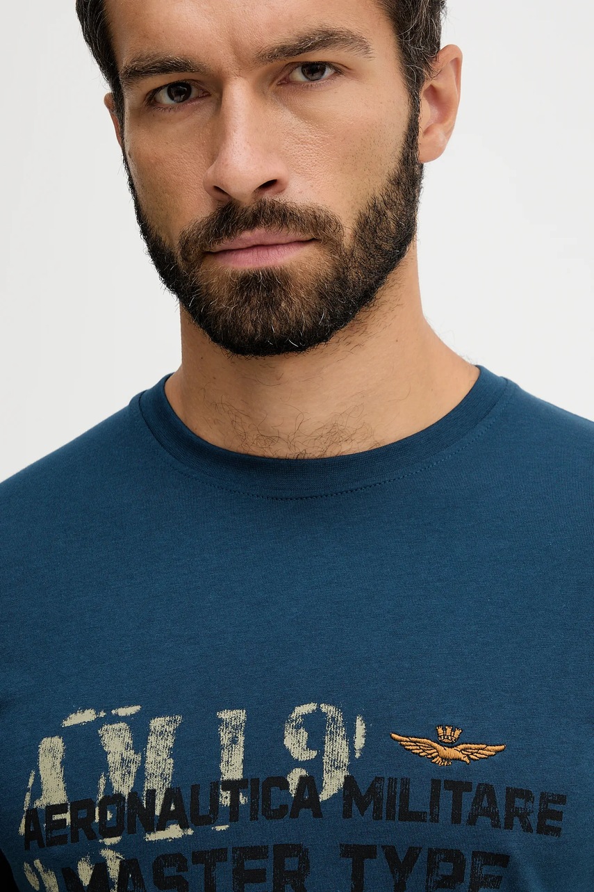 Aeronautica Militare t-shirt bawełniany męski kolor niebieski z nadrukiem TS2479UJ00641