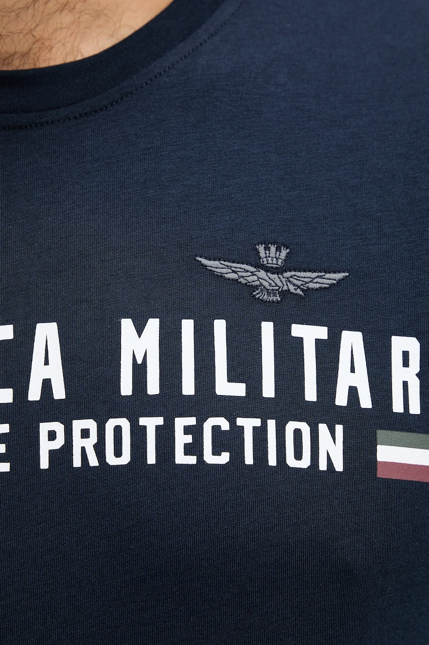 Aeronautica Militare t-shirt bawełniany męski kolor granatowy z nadrukiem TS1942UJ00538