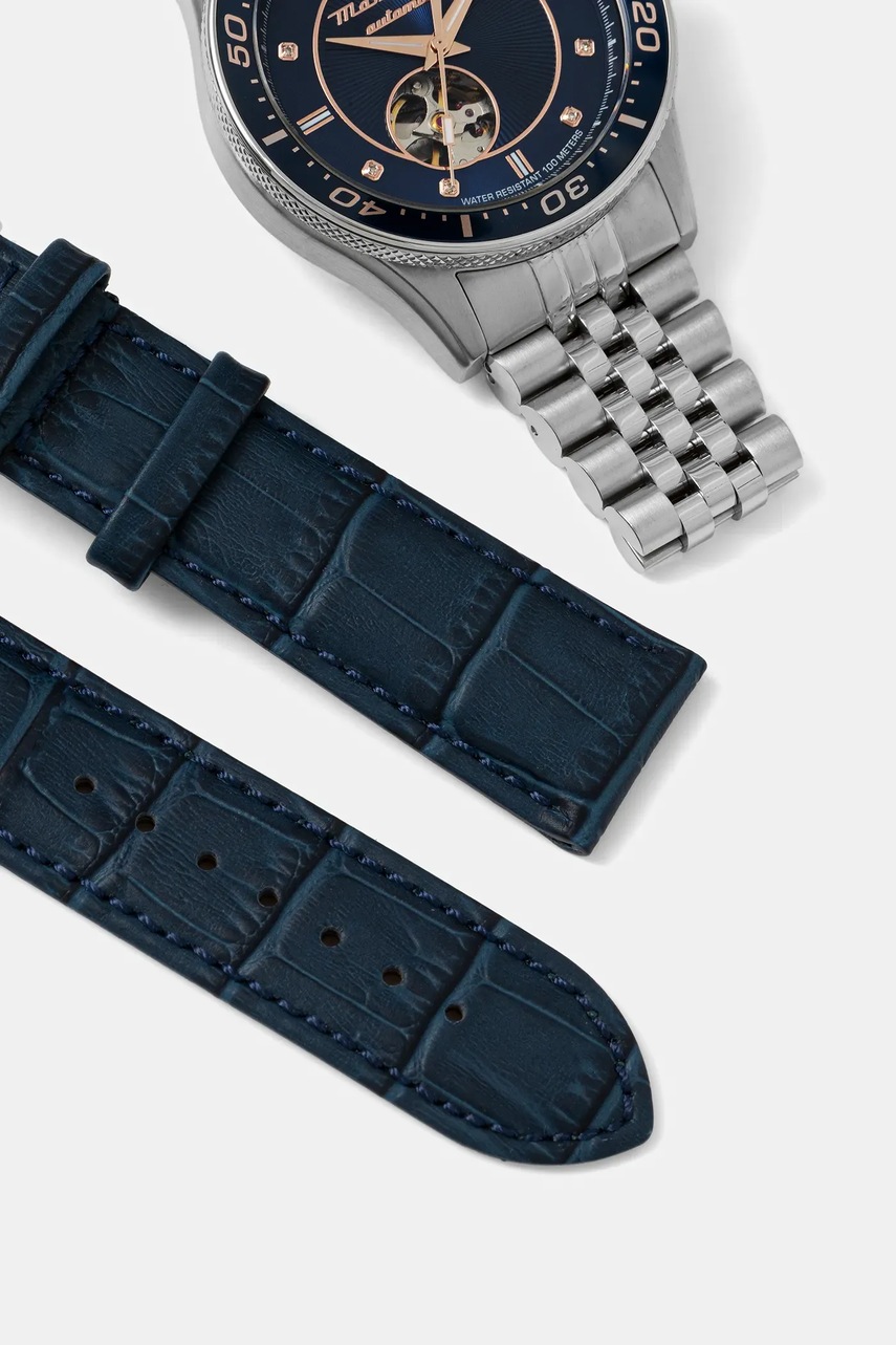 Skład: Skóra naturalna, Stal szlachetna, Szkło szafirowe