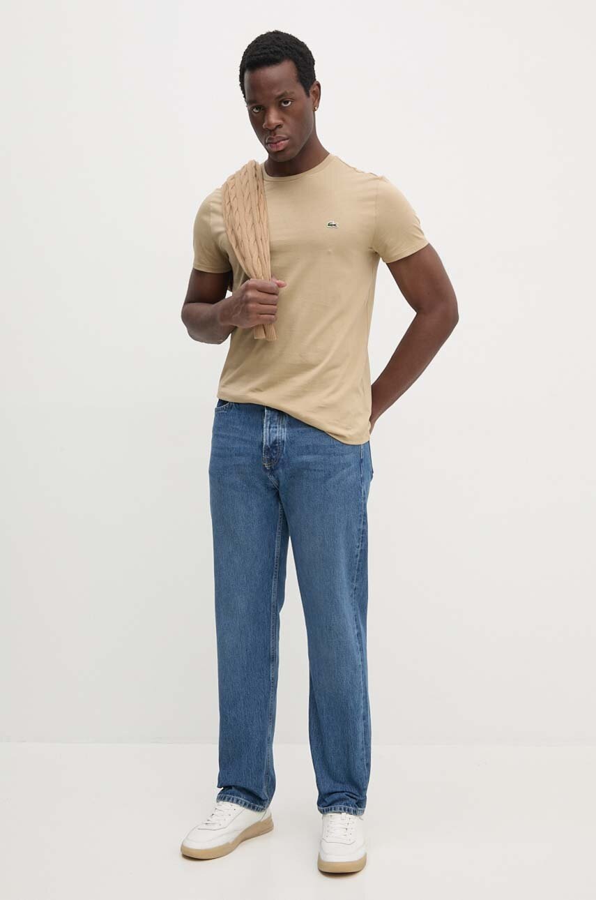 Lacoste t-shirt bawełniany męski kolor beżowy gładki
