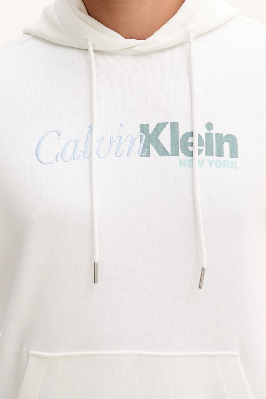 Calvin Klein bluza bawełniana męska kolor biały z kapturem z nadrukiem LV04LD241G