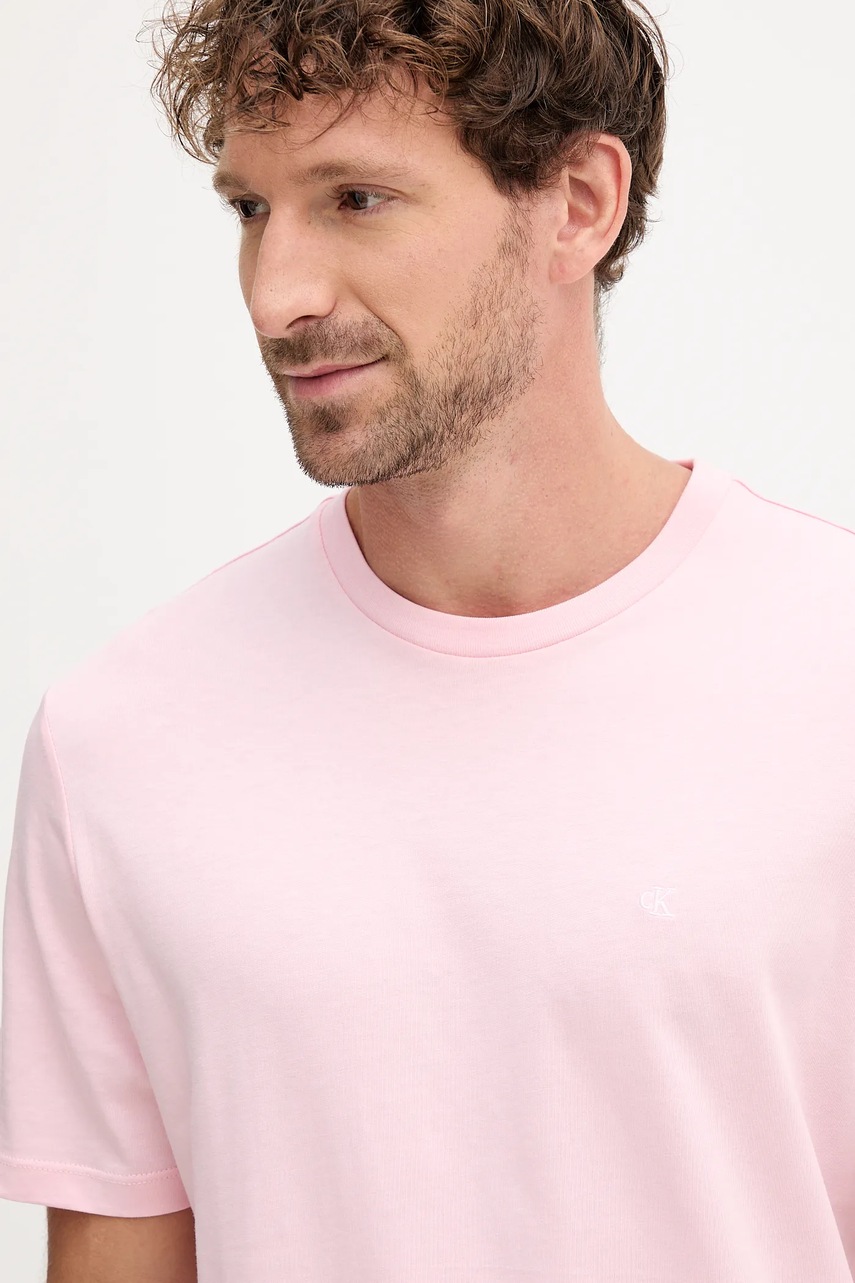 Calvin Klein Jeans t-shirt bawełniany męski kolor różowy gładki LV040HM265