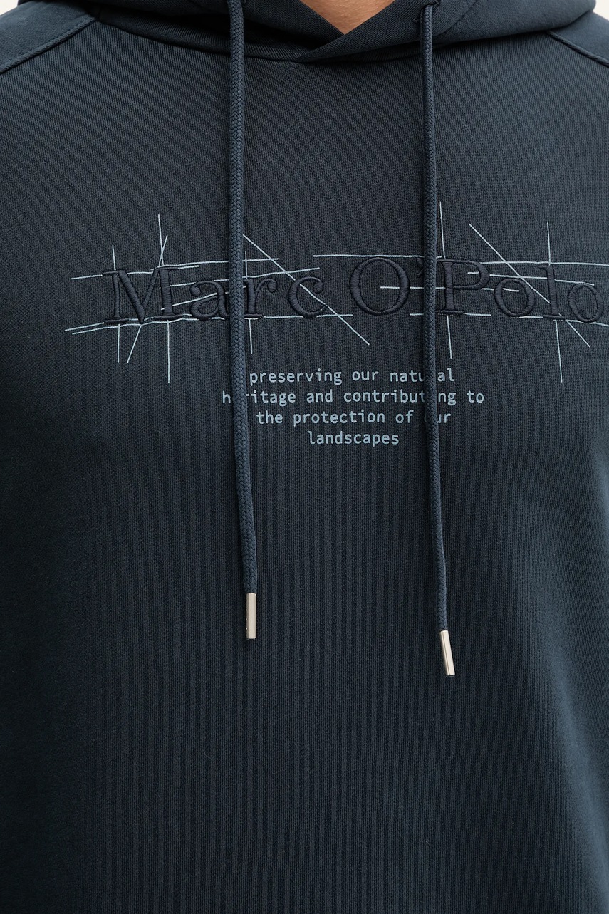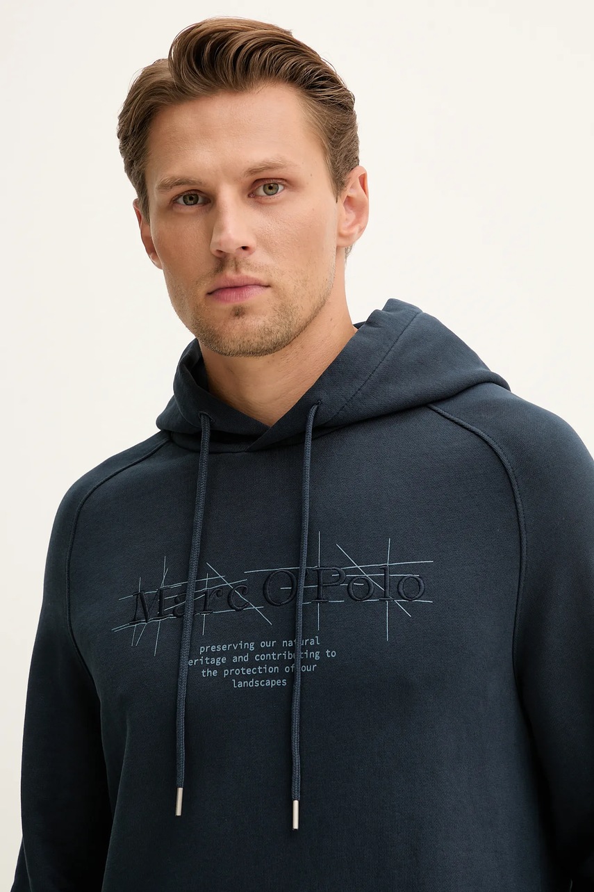 Marc O'Polo bluza bawełniana męska kolor granatowy z kapturem z nadrukiem 528401054078