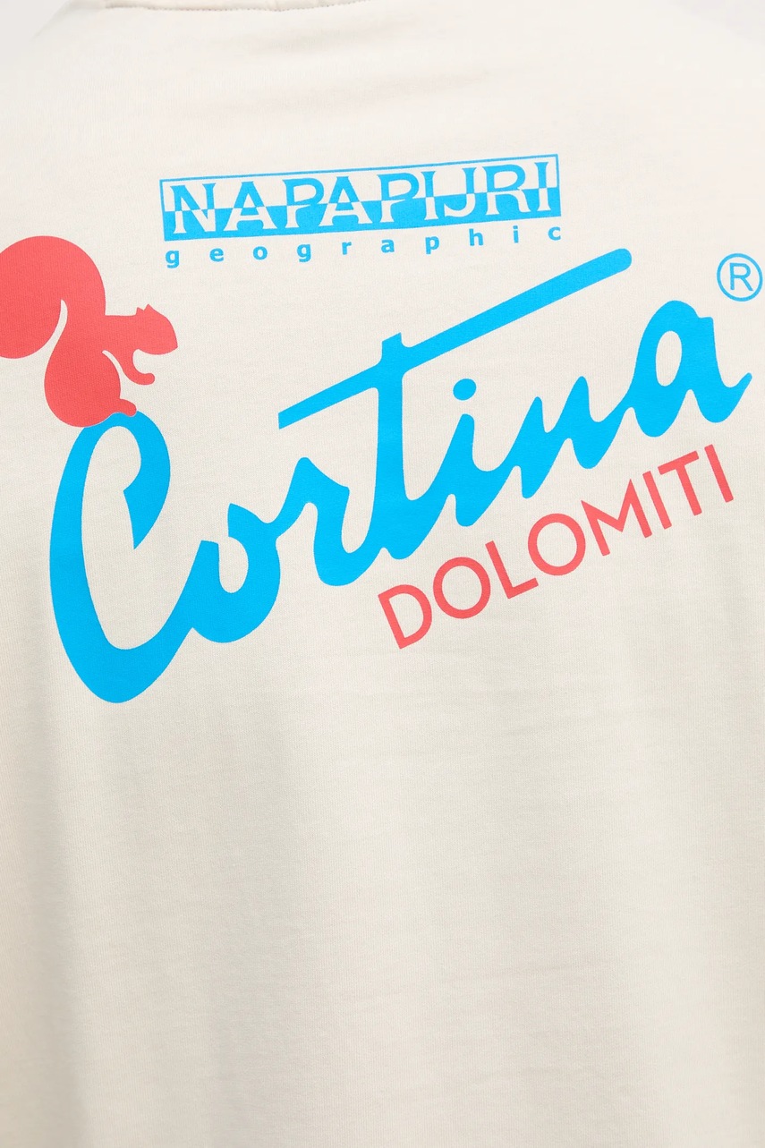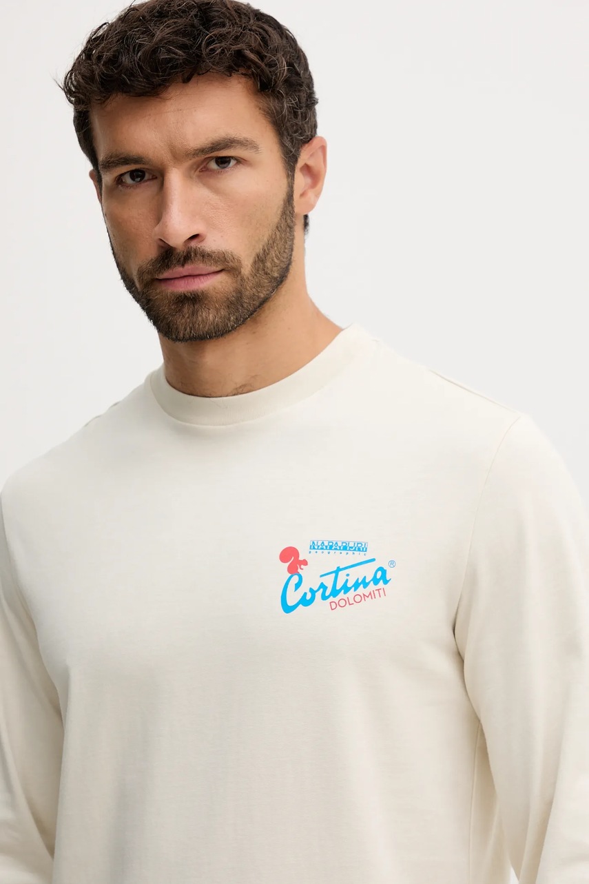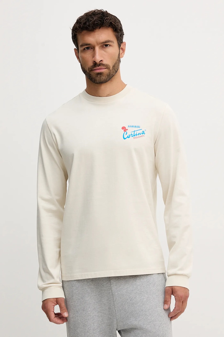 Napapijri longsleeve bawełniany S-Fiemme kolor beżowy z nadrukiem NP0A8947N1J1