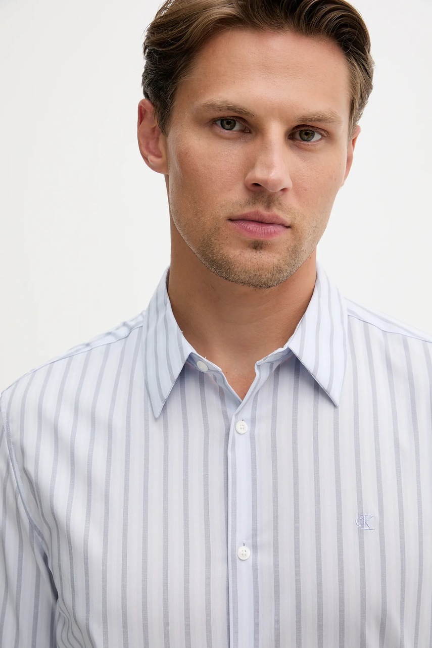 Calvin Klein koszula męska kolor niebieski slim z kołnierzykiem klasycznym LV04LD137G