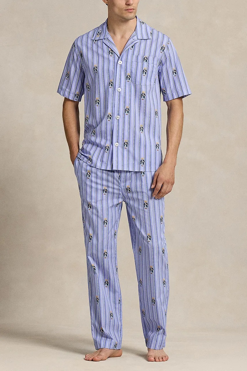 Polo Ralph Lauren koszula piżamowa bawełniana męska kolor niebieski wzorzysta 714981415