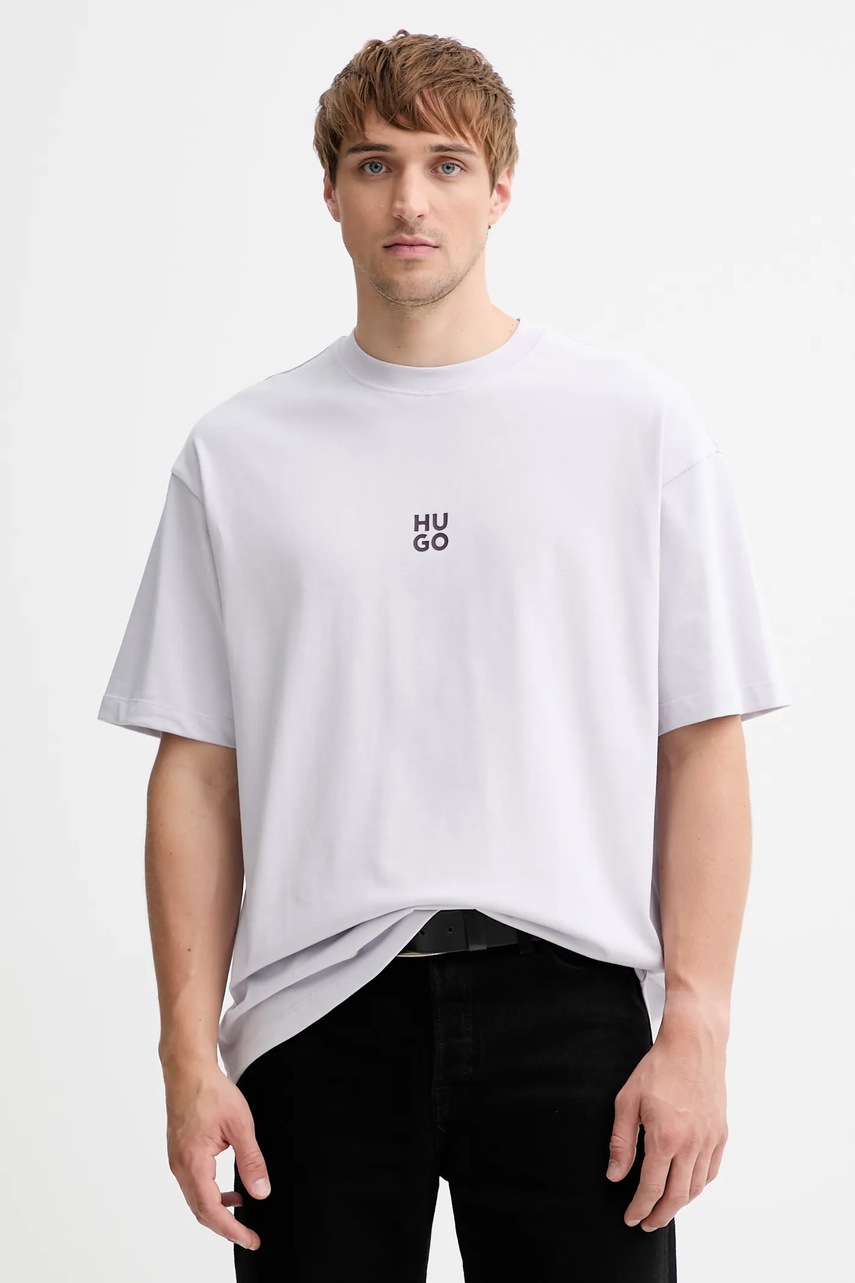 HUGO t-shirt bawełniany męski kolor fioletowy z nadrukiem 50521269