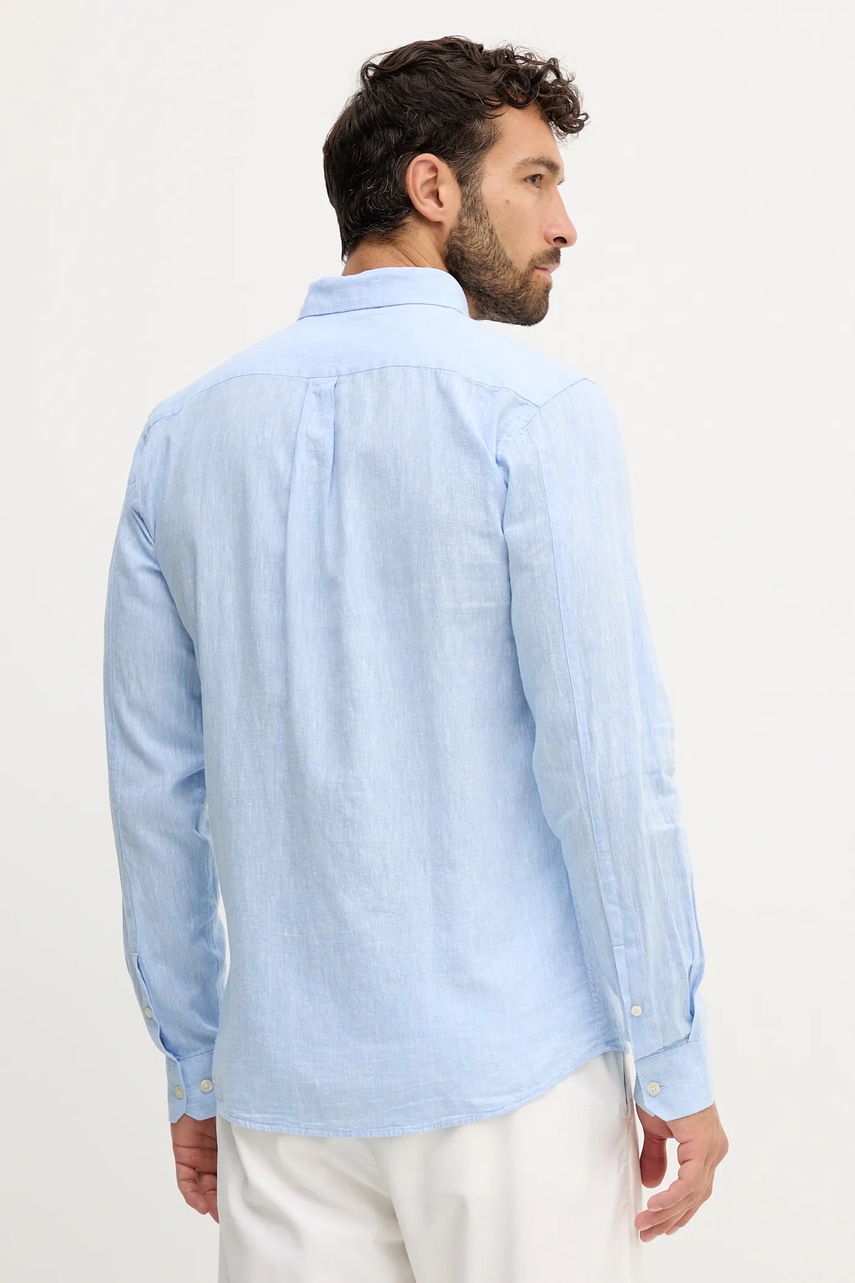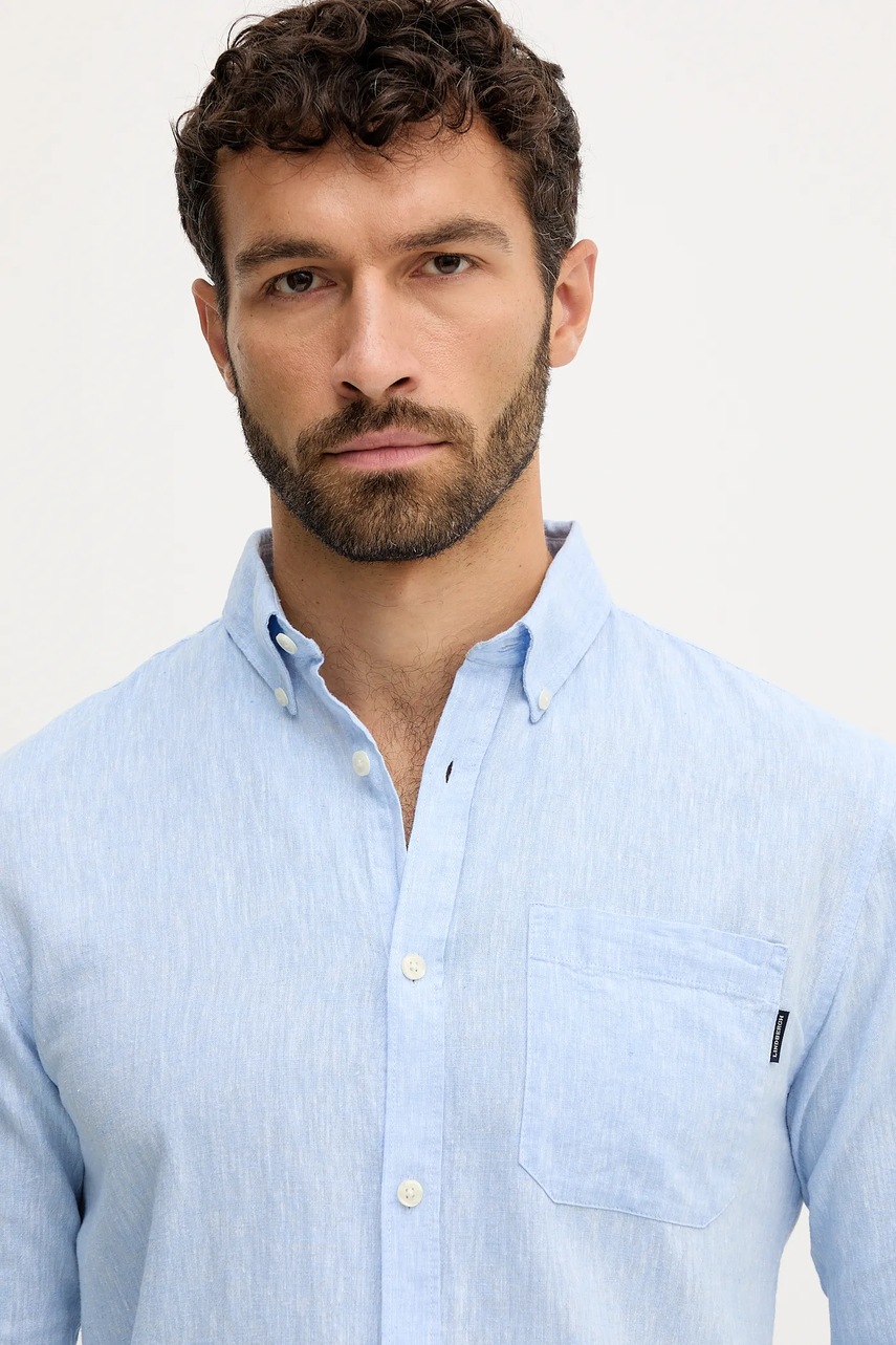 Lindbergh koszula lniana męska kolor niebieski regular z kołnierzykiem button-down 30.220276