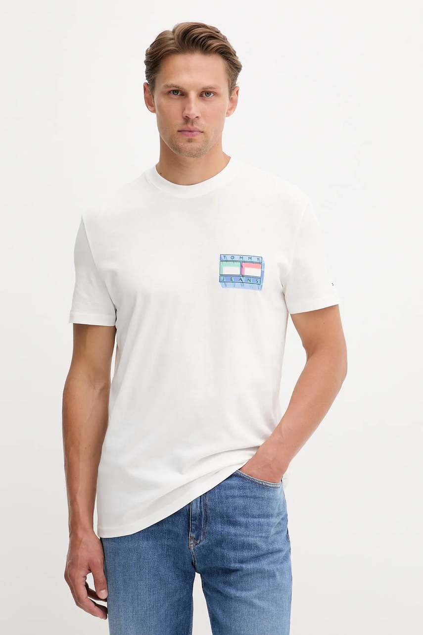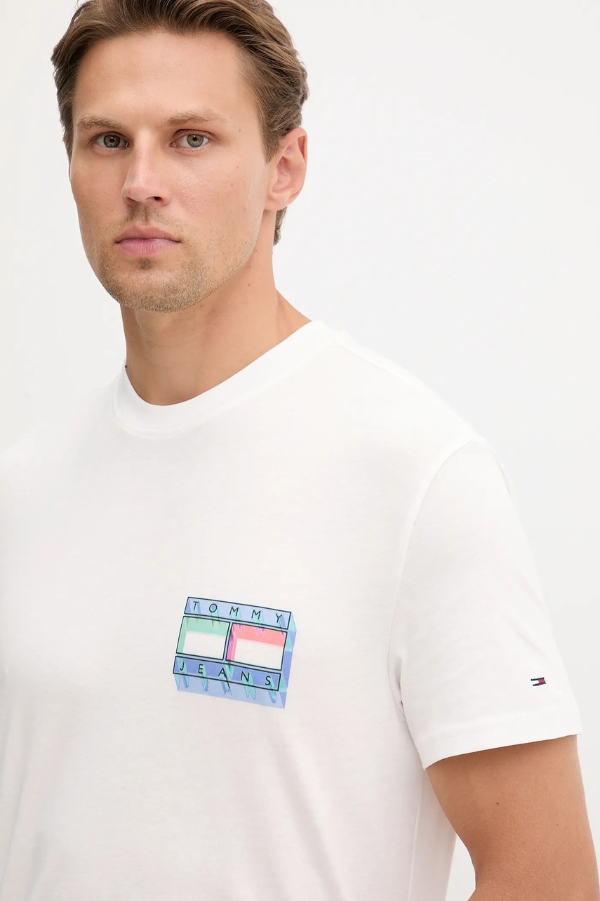 Tommy Jeans t-shirt bawełniany męski kolor biały wzorzysty DM0DM21980