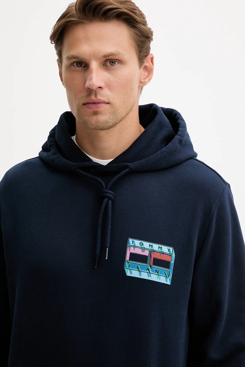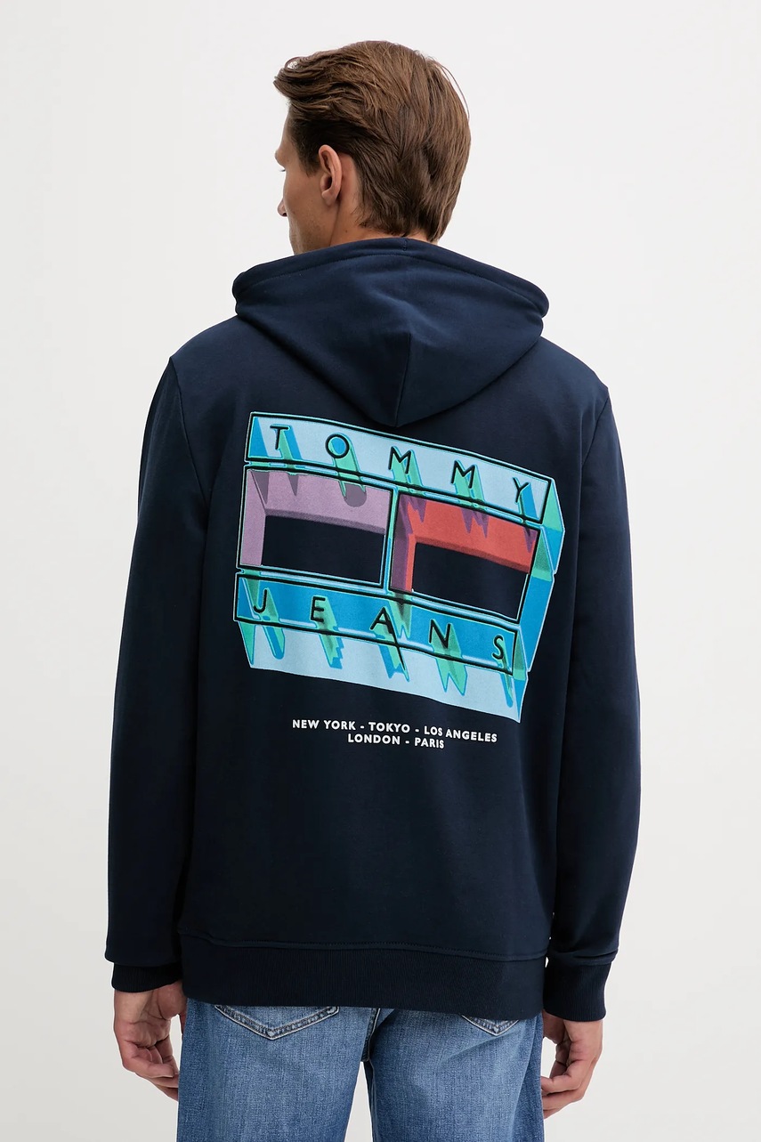 Tommy Jeans bluza bawełniana męska kolor granatowy z kapturem z nadrukiem DM0DM22077