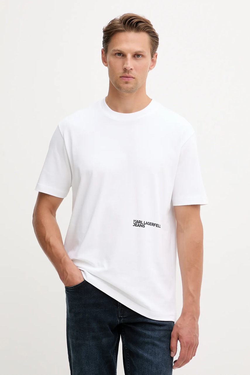 Karl Lagerfeld Jeans t-shirt bawełniany męski kolor biały z nadrukiem A4M17027