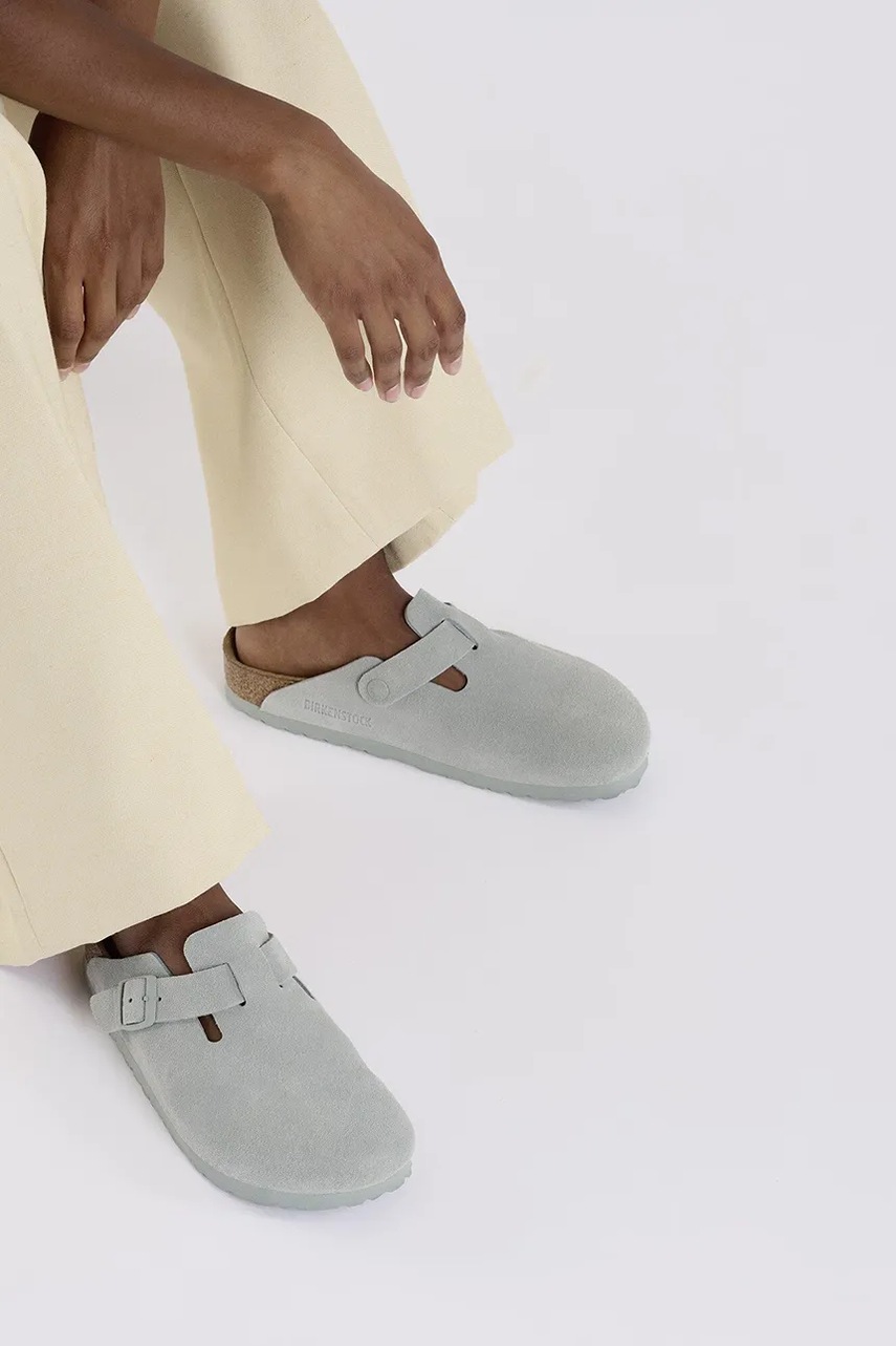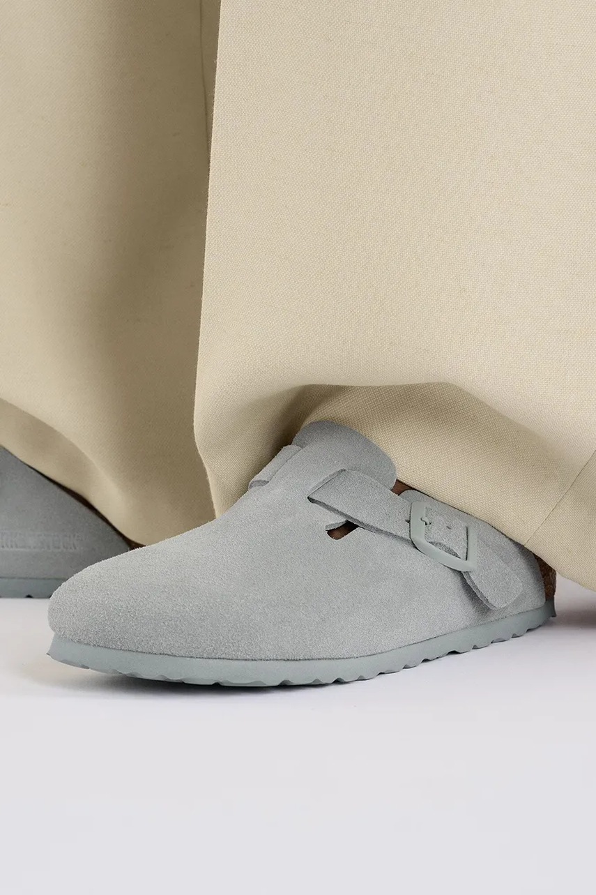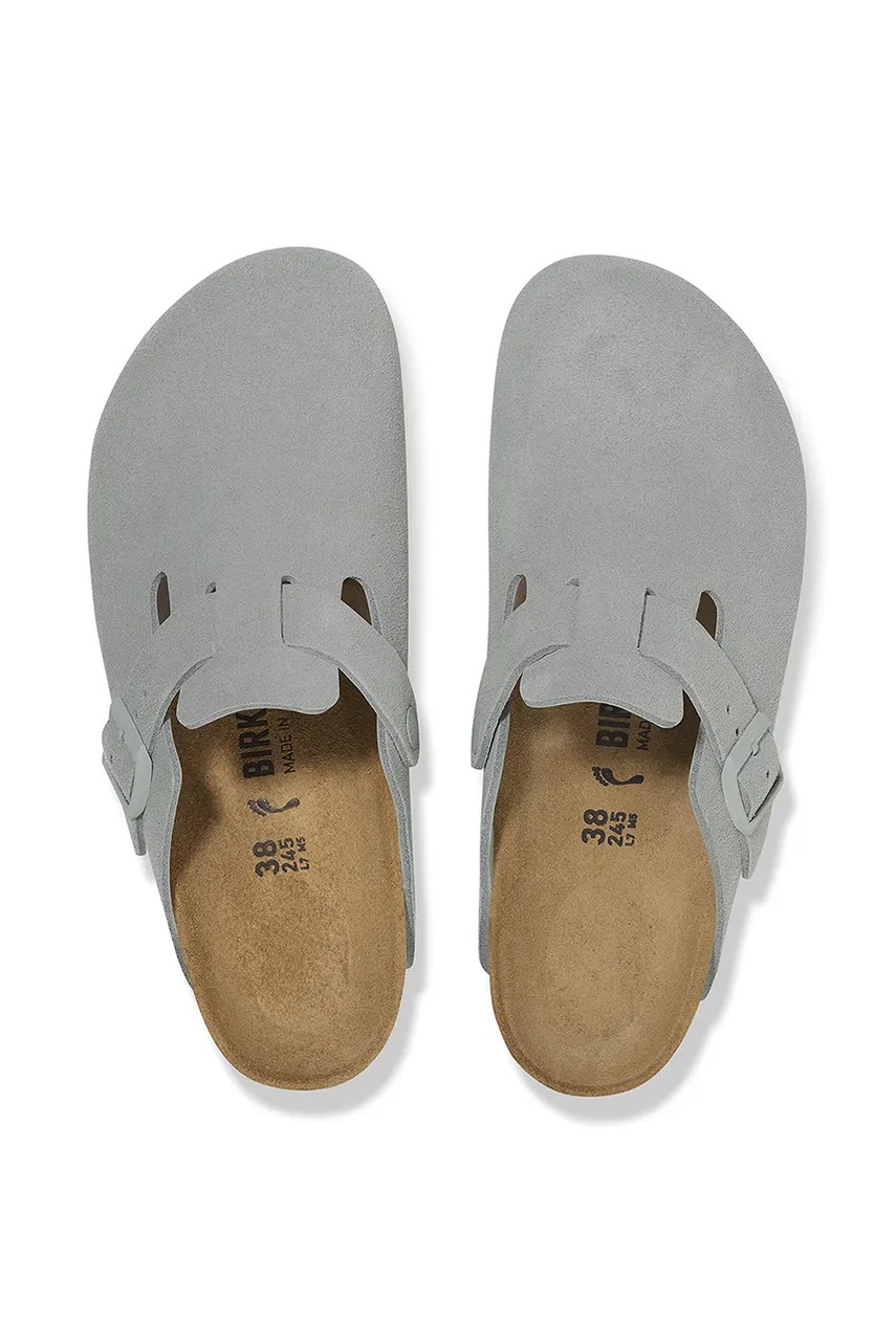 Birkenstock klapki zamszowe Boston męskie kolor niebieski 1029212