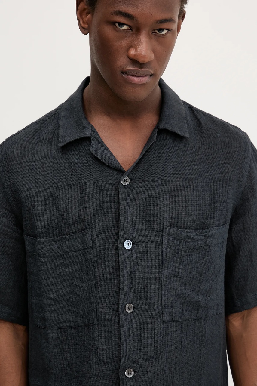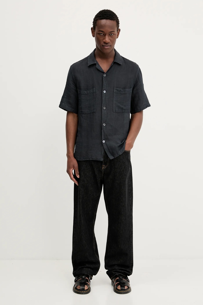 BARENA VENEZIA koszula lniana Camicia Mola męska kolor granatowy relaxed z kołnierzykiem klasycznym CAU5073.3144