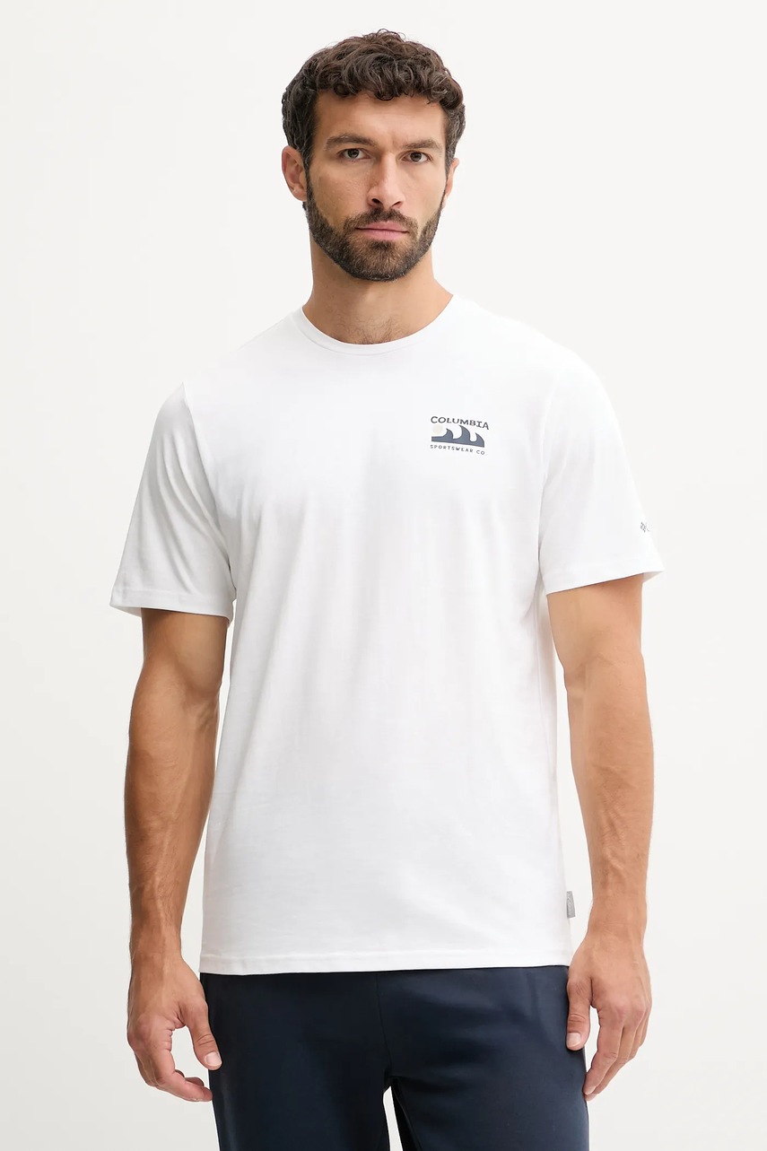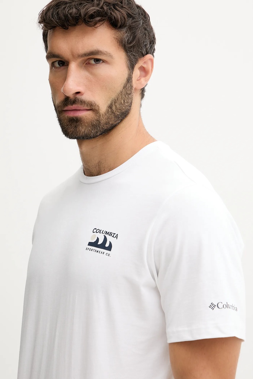 Columbia t-shirt bawełniany Explorers Canyon męski kolor biały z nadrukiem 2036451.