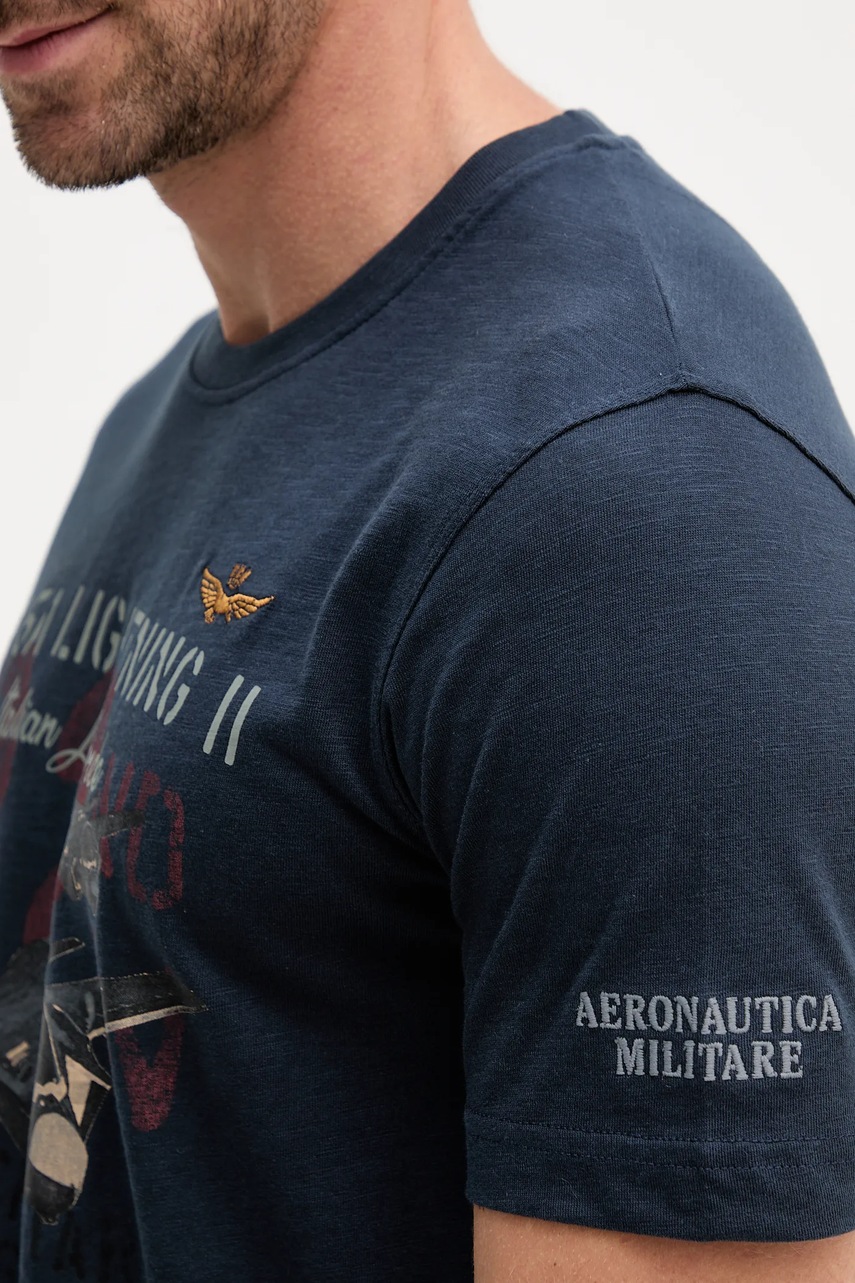 Aeronautica Militare t-shirt bawełniany męski kolor granatowy wzorzysty TS2472UJ00708