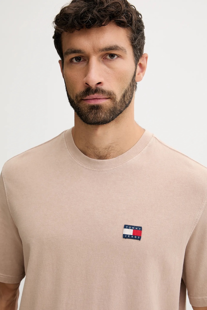 Tommy Jeans t-shirt bawełniany męski kolor brązowy gładki DM0DM21975
