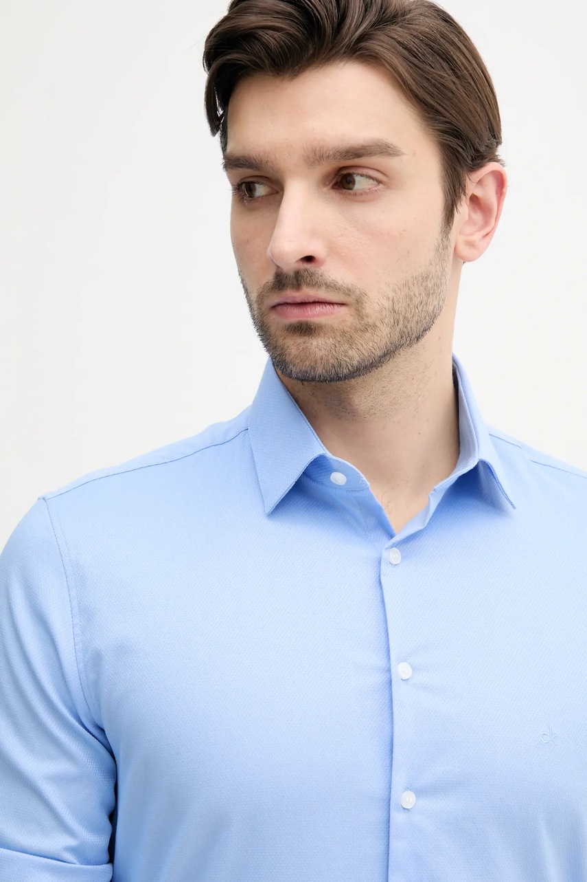 Calvin Klein koszula męska kolor niebieski slim z kołnierzykiem klasycznym K10K114298