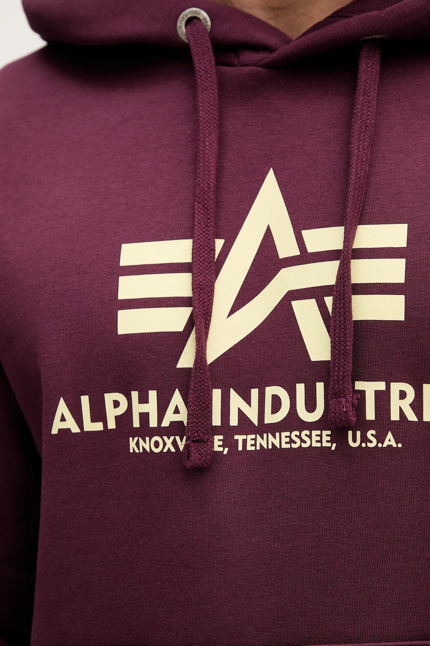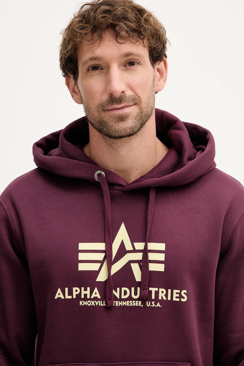 Alpha Industries bluza męska kolor bordowy z kapturem z nadrukiem 178312.608