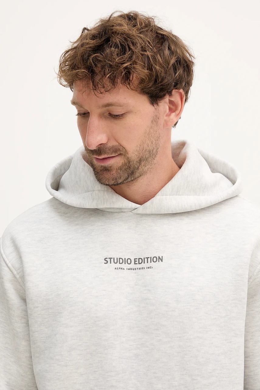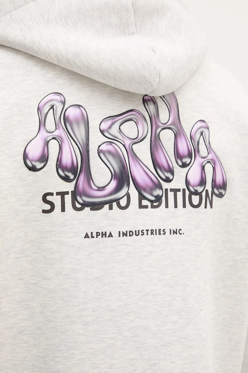 Alpha Industries bluza męska kolor szary z kapturem z nadrukiem 156339.752