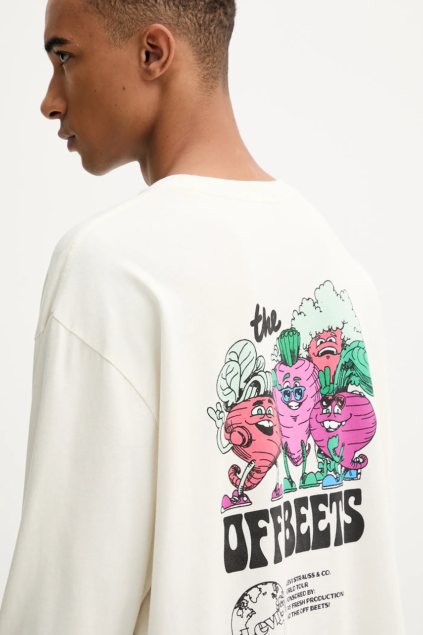 Levi's longsleeve bawełniany kolor beżowy z nadrukiem 005N7