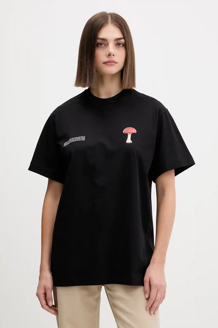 Pangaia t-shirt bawełniany kolor czarny z nadrukiem 10002604