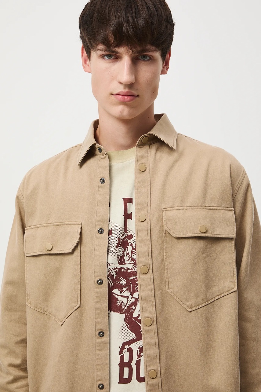 - Koszula w fasonie regular delikatnie dopasowuje się do sylwetki, ale nie podkreśla jej nadmiernie, zapewniając swobodę ruchów.