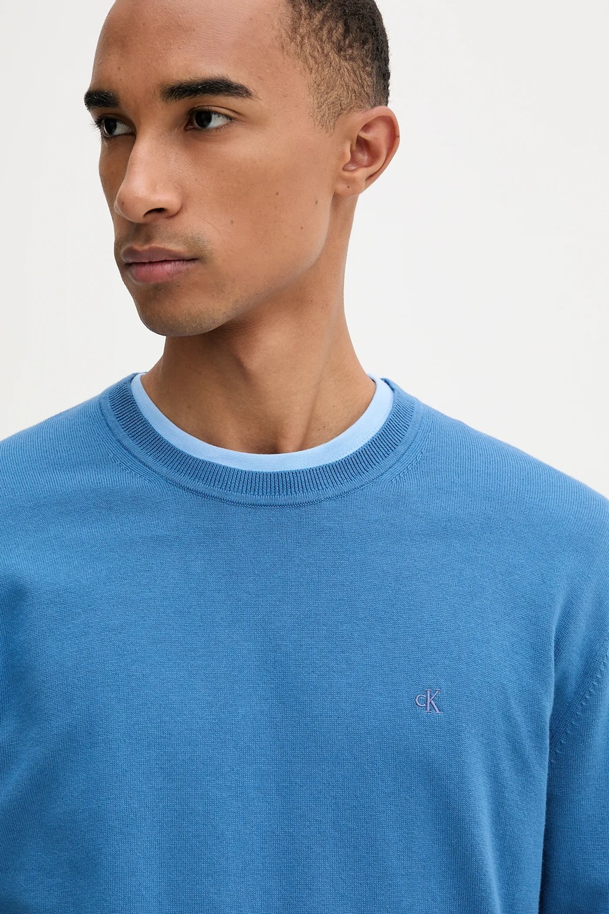 Calvin Klein sweter bawełniany męski kolor niebieski lekki LV040BM343