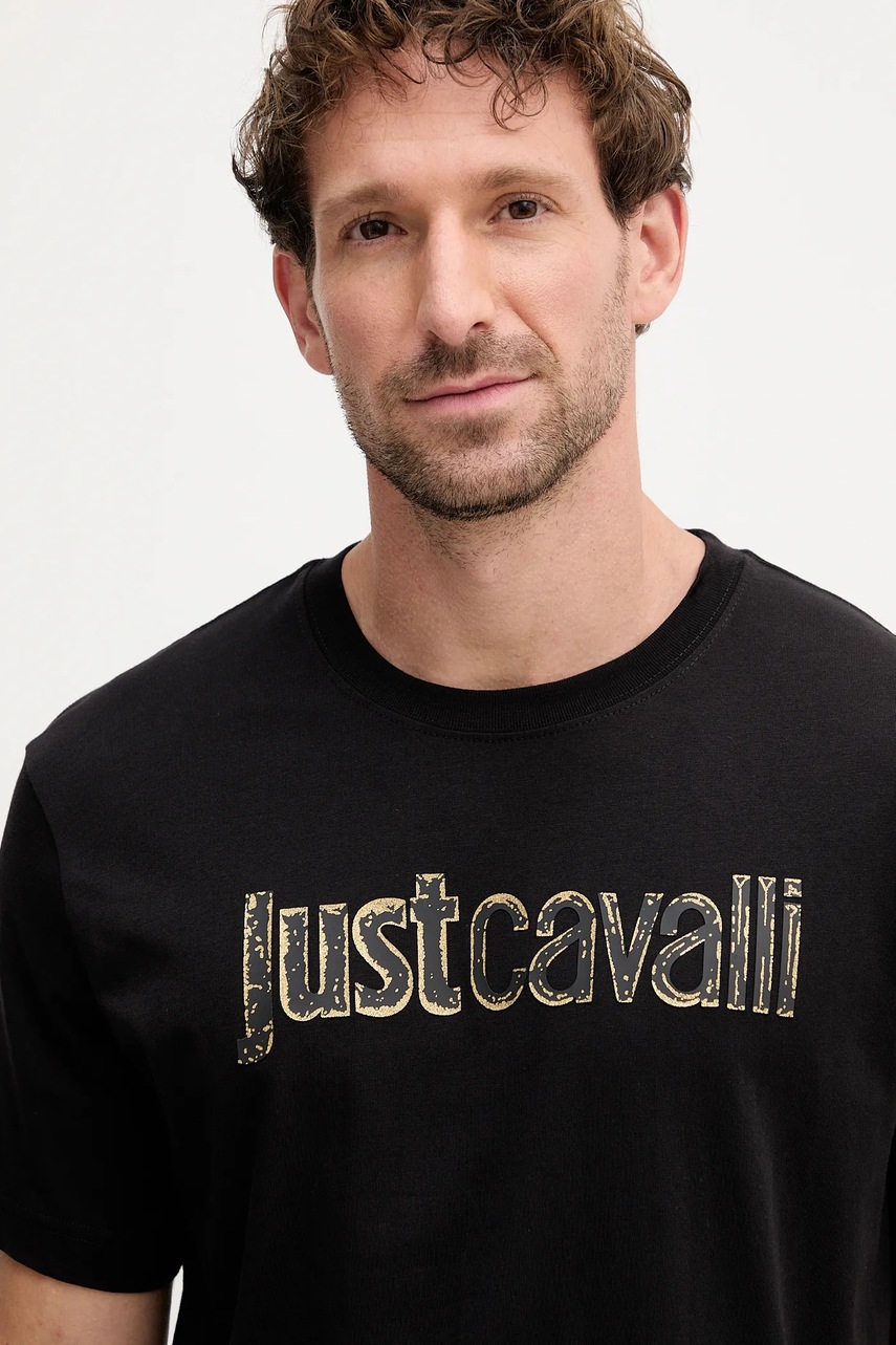 Just Cavalli t-shirt bawełniany męski kolor czarny z nadrukiem 79OAHT16 CJ500