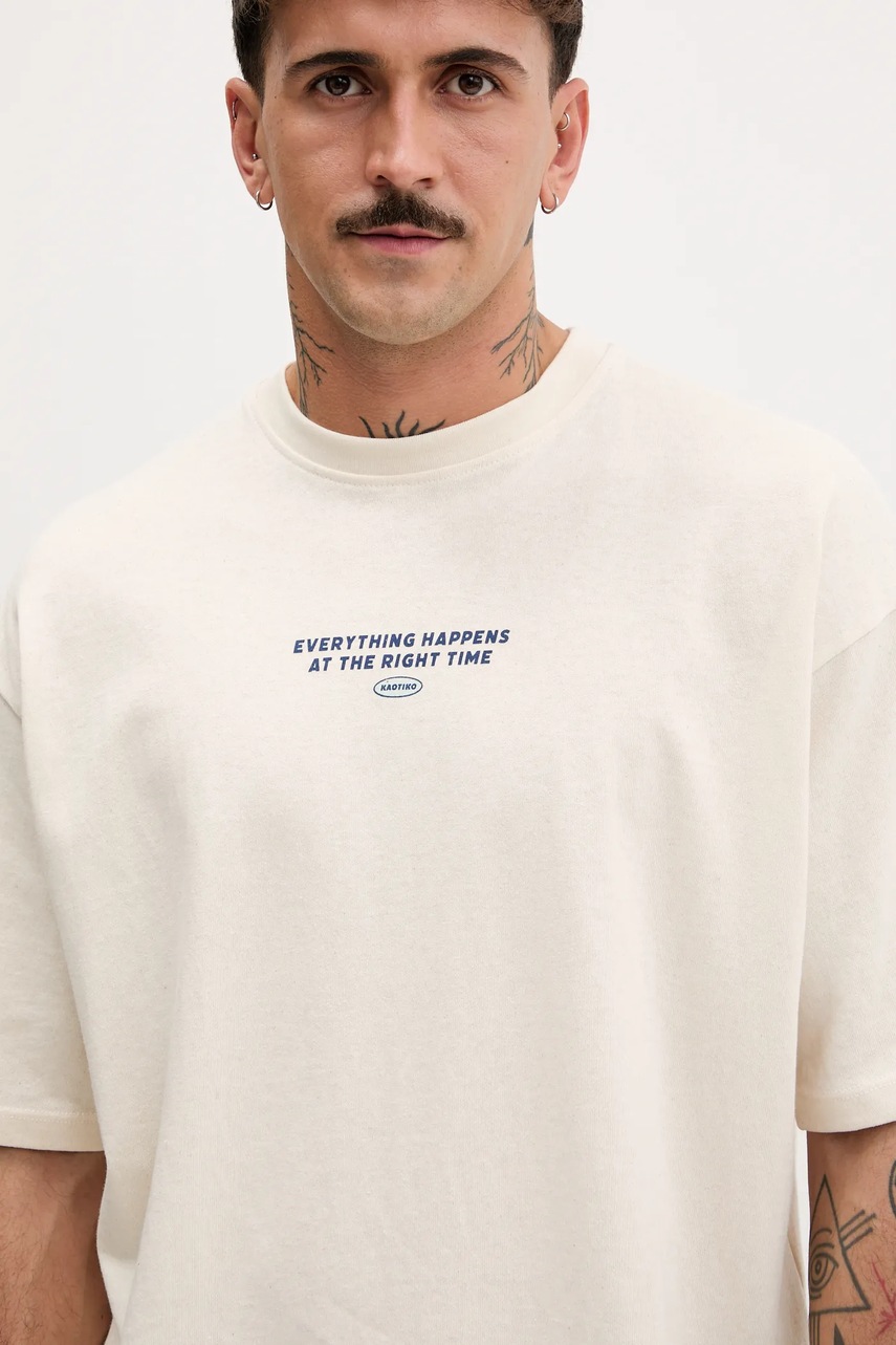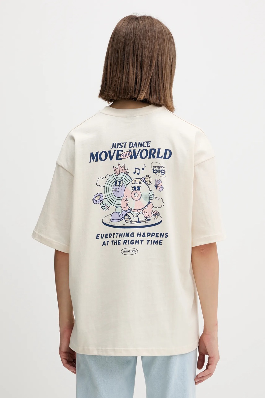 Kaotiko t-shirt bawełniany kolor beżowy z nadrukiem AR050-01S-G002
