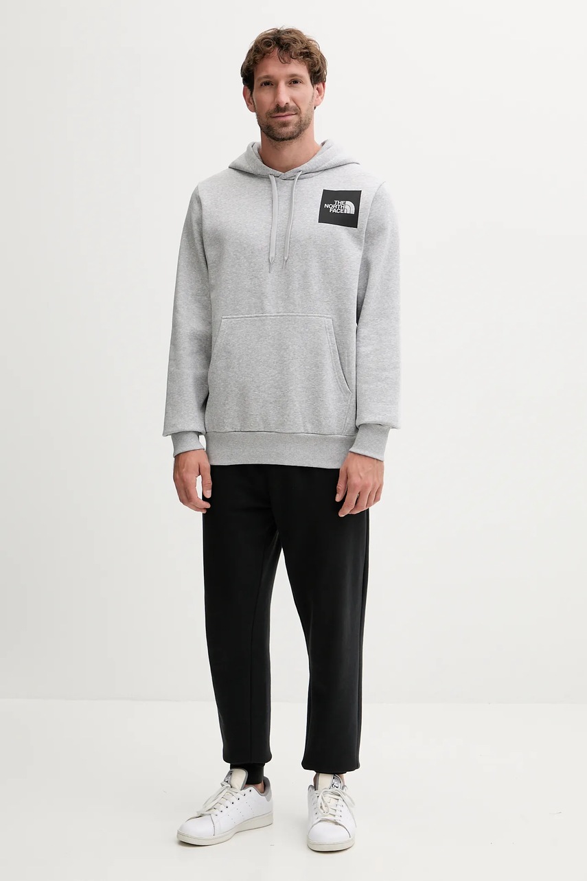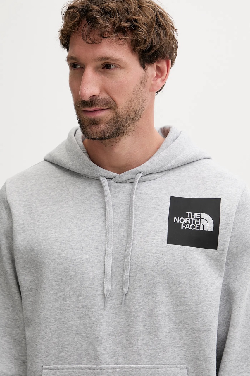 The North Face bluza Fine męska kolor szary z kapturem z nadrukiem NF0A89EUDYX1