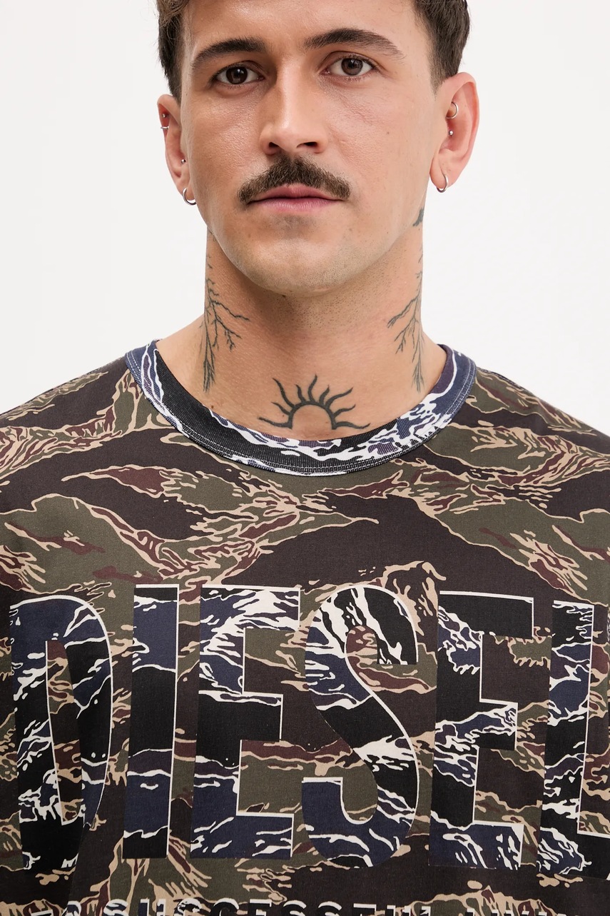 Diesel t-shirt bawełniany T-BOXT-T22 męski kolor zielony wzorzysty A19343.0AJFJ