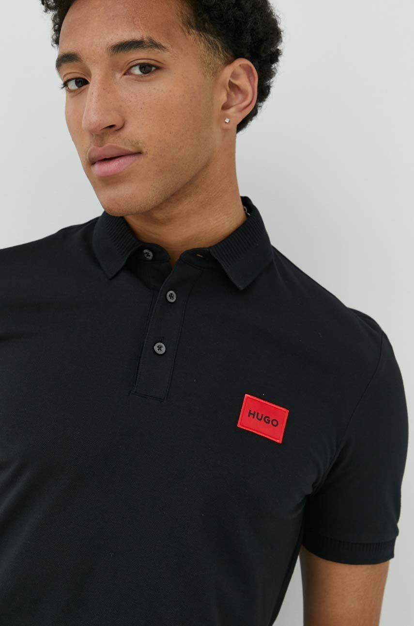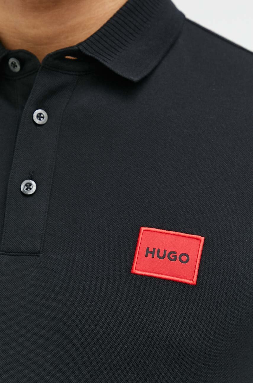 HUGO polo bawełniane kolor czarny z aplikacją 50466202