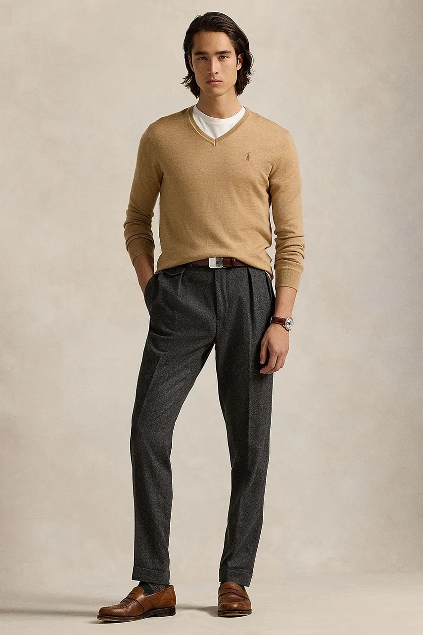Polo Ralph Lauren sweter wełniany RWS-Longsleeve męski kolor beżowy lekki 710946142