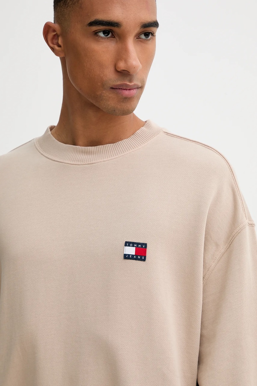 Tommy Jeans bluza bawełniana męska kolor brązowy z aplikacją DM0DM22079