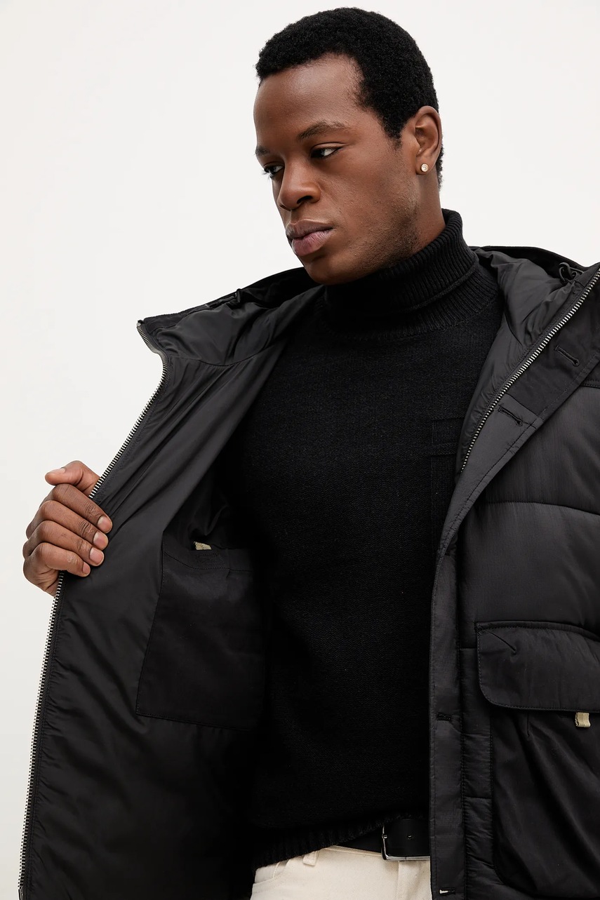 - Podwyższony kołnierz i nieodpinany kaptur gwarantują dodatkową ochronę przed chłodem.