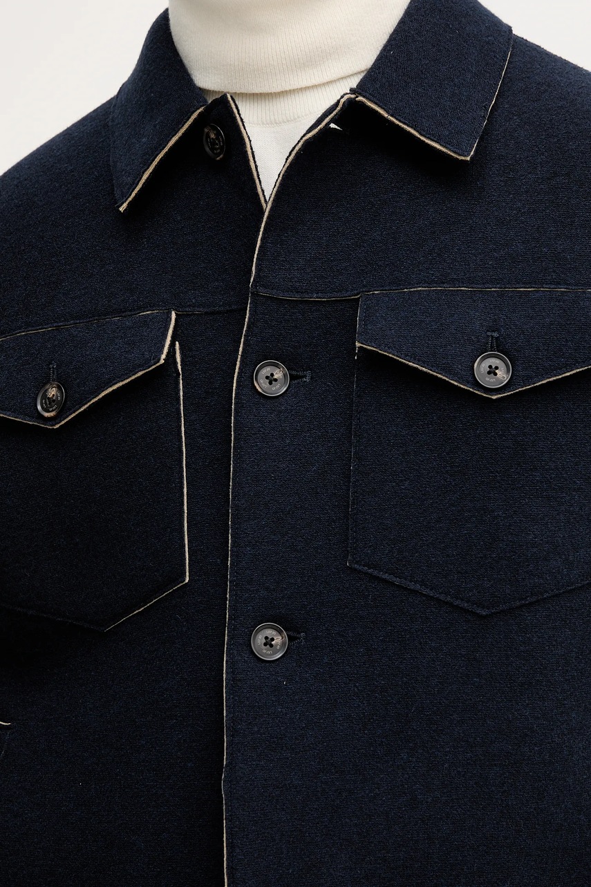 - Dwie wsuwane kieszenie boczne oraz dwie zapinane na guzik kieszonki na piersi.