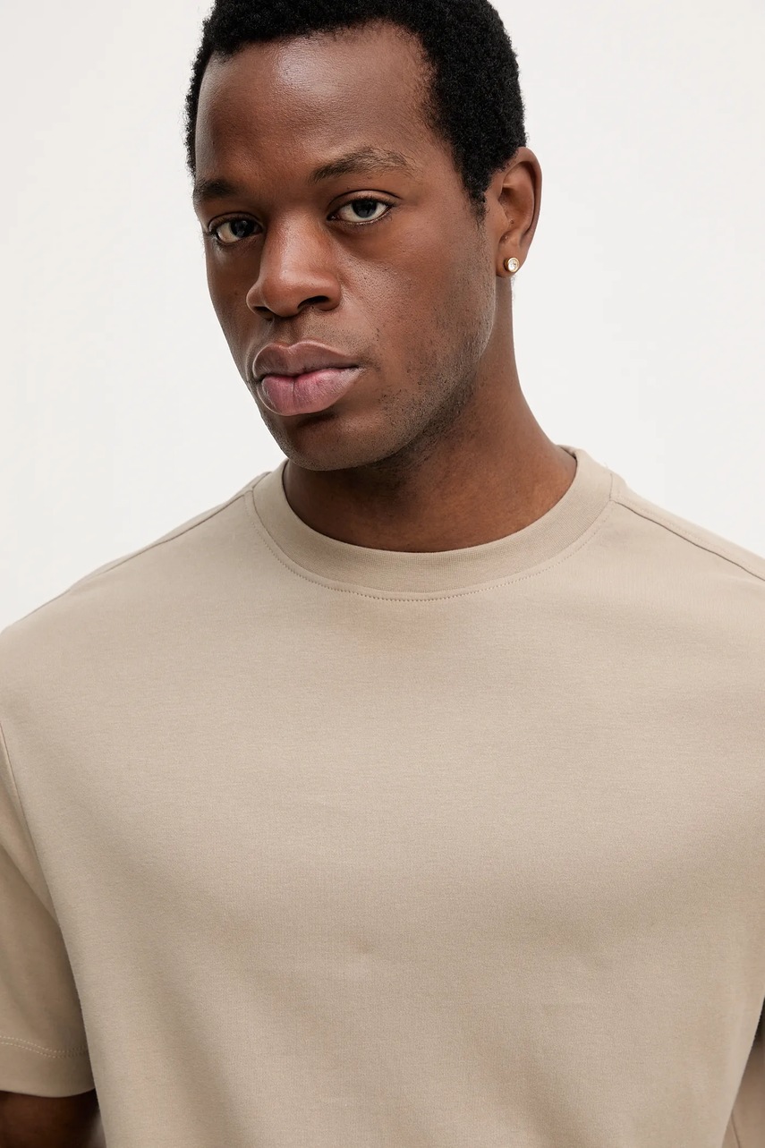Mos Mosh t-shirt bawełniany DARREN męski kolor beżowy gładki 508280