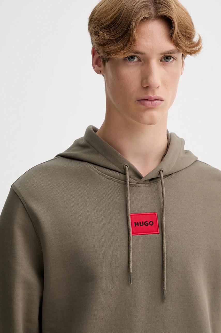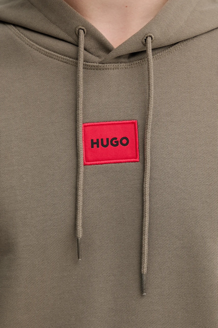 HUGO bluza bawełniana męska kolor zielony z kapturem z aplikacją 50458700