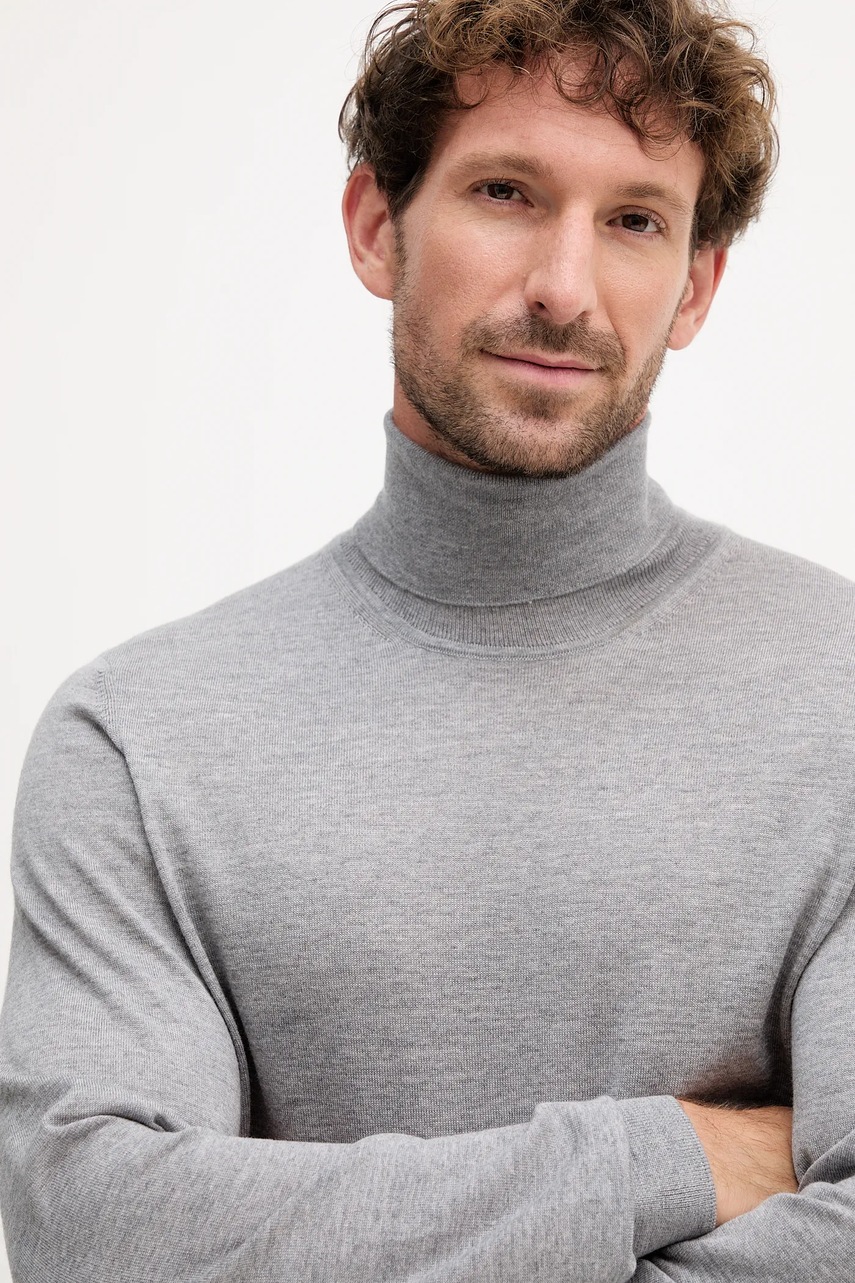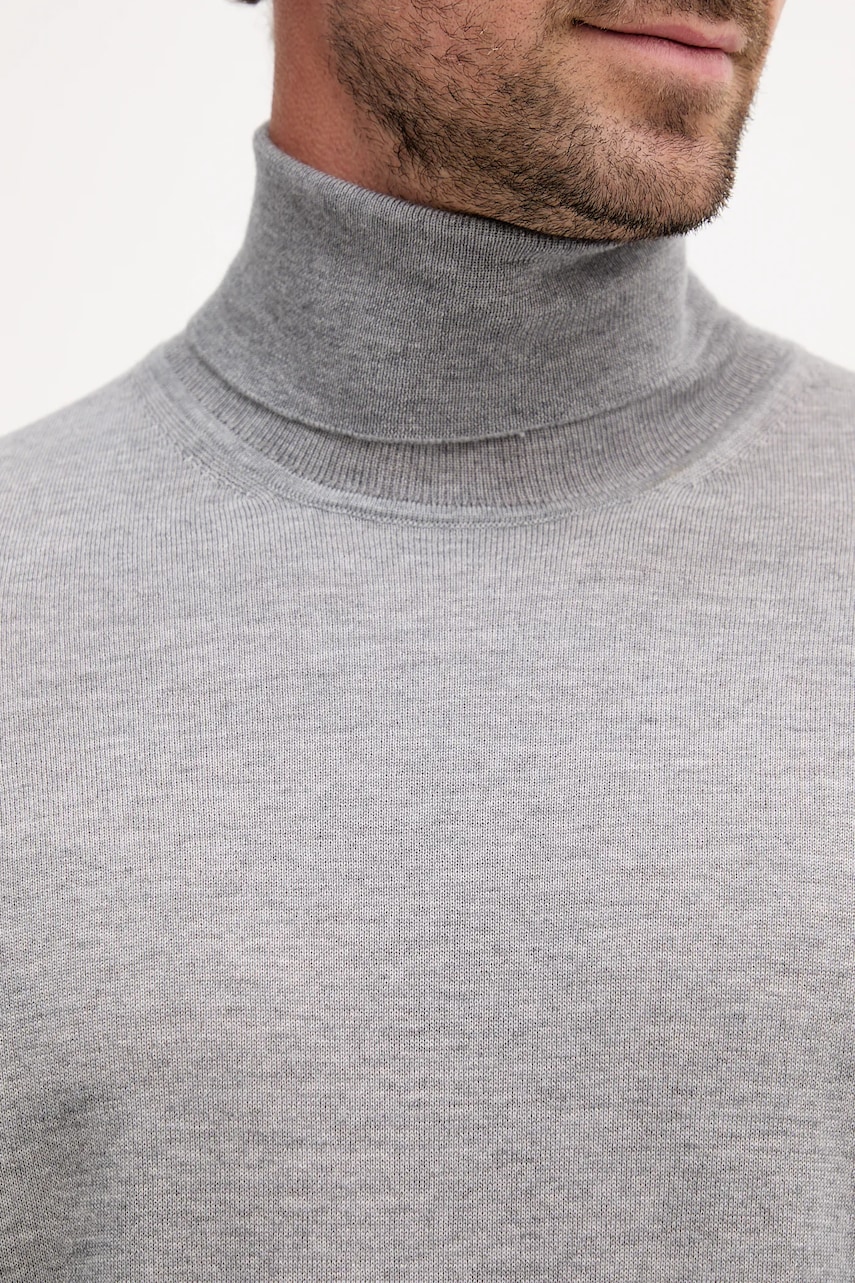 BOSS sweter wełniany męskie kolor szary lekkie z golferm 50468262