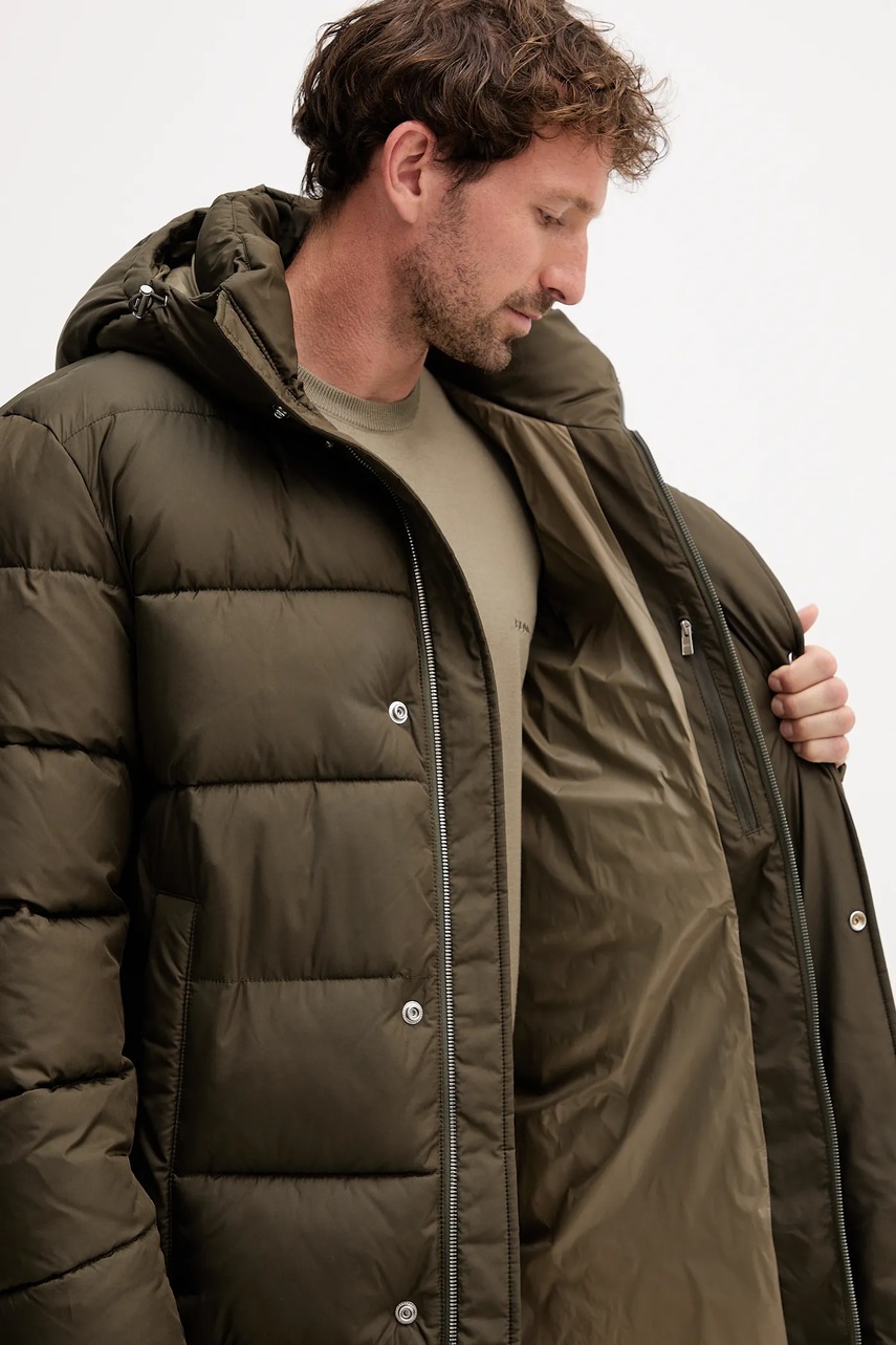 - Podwyższony kołnierz i nieodpinany kaptur gwarantują dodatkową ochronę przed chłodem.