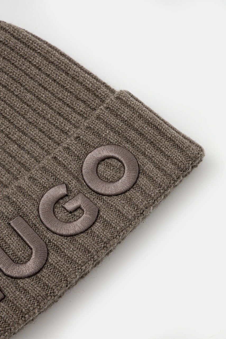 HUGO czapka wełniana kolor zielony z cienkiej dzianiny wełniana 50527804